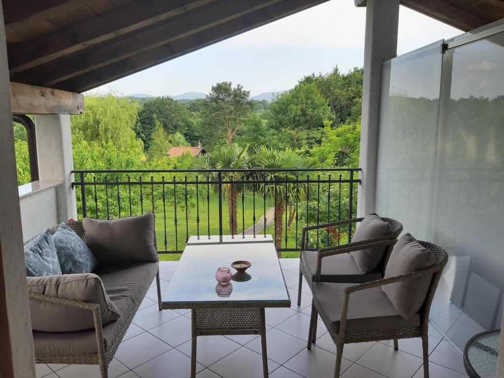 Moderno urejena 140 let stara vila na podeželju in v neokrnjenih naravi, le nekaj kilometrov od centra Nove Gorice in Gorice v Italiji, vam v sodobno opremljenih dvoposteljnih sobah s terasami omogoča kakovostno preživet oddih. V vseh prostorih je na voljo tudi Wi-Fi. Smo tudi le nekaj kilometrov stran od avtoceste in če potujete mimio, se pri nas lahko oddahnete in naužijete mir. Mi bomo pripravili za vas. Sobe so v I.nads in vključujejo satelitsko TV zaslonom, zadnjo ploščo s prho, toaletnim priborom, čistilom, sušilcem za lase. Vključeno je dnevno čiščenje in menjava brisač ter redna menjava posteljnega perila. Družine imajo brezplačno uporabo otroške posteljice. Vsaka soba ima zadnjo teraso, kjer lahko uživate po napornem dnevu ob parku in se sprostite ob skodelici čaja ali kave. V pritličju je skupna jedilnica , kjer vam postrežemo pijačo dobrodošlico z lokalnimi vini, ves dan imate na razpolago sadje in domače žganjice. Zjutraj vam postrežemo z domačim in obilnim zajtrkom. Gostom je tu ves dan na razpolago grelnik vode in čaj, kavni aparat in mikrovalovna pečica. Iz jedilnice je izhod v atrij in park, kjer so igrala, ležalniki in prostor za žar. Oddahnite si v senci razkošnih hrastov in lip. Začutite moč čarobne pokrajine in dovolite, da vas zapelje spokojnost narave in bogata kulturna dediščina spodnje Vipavske doline.