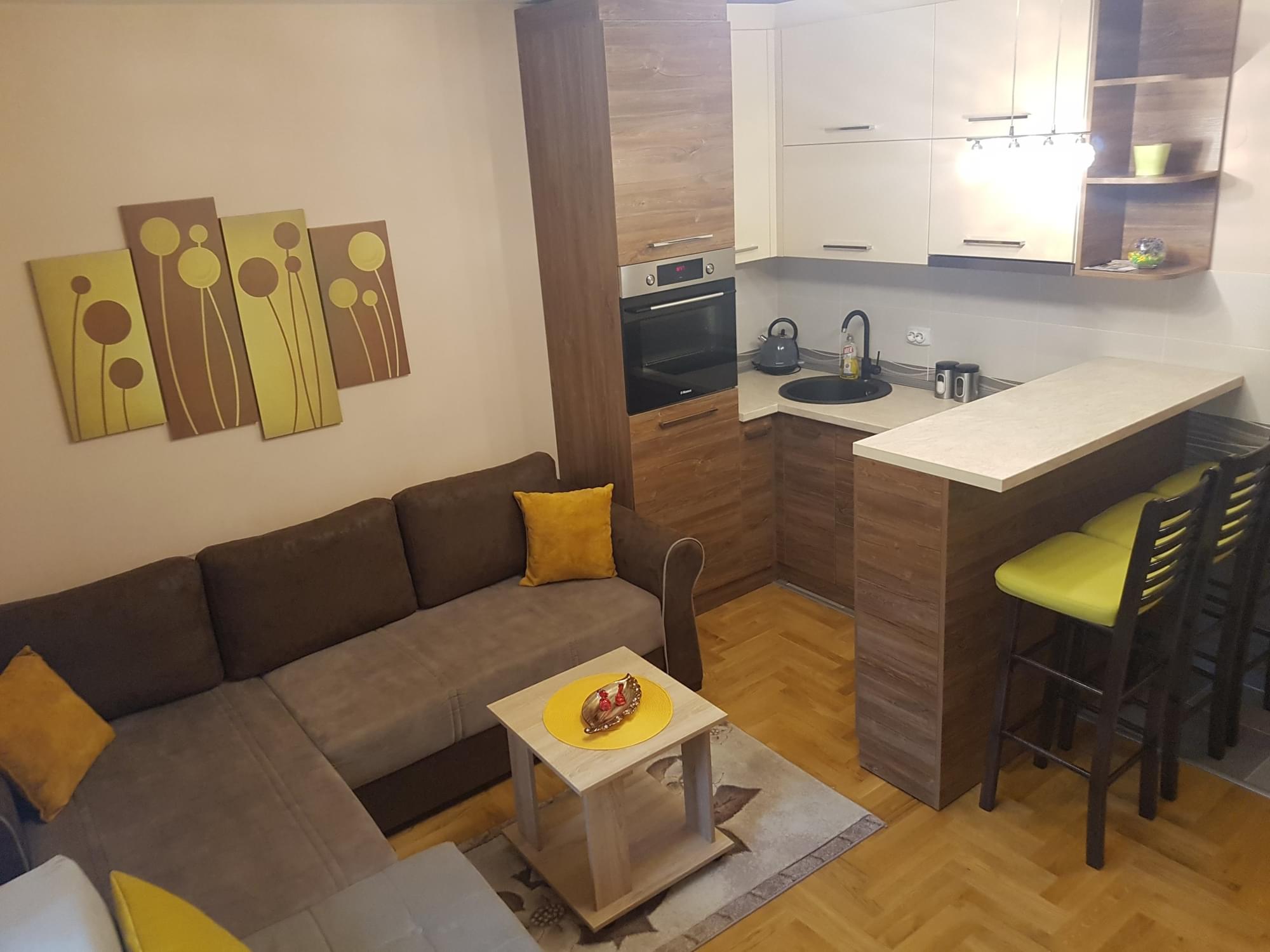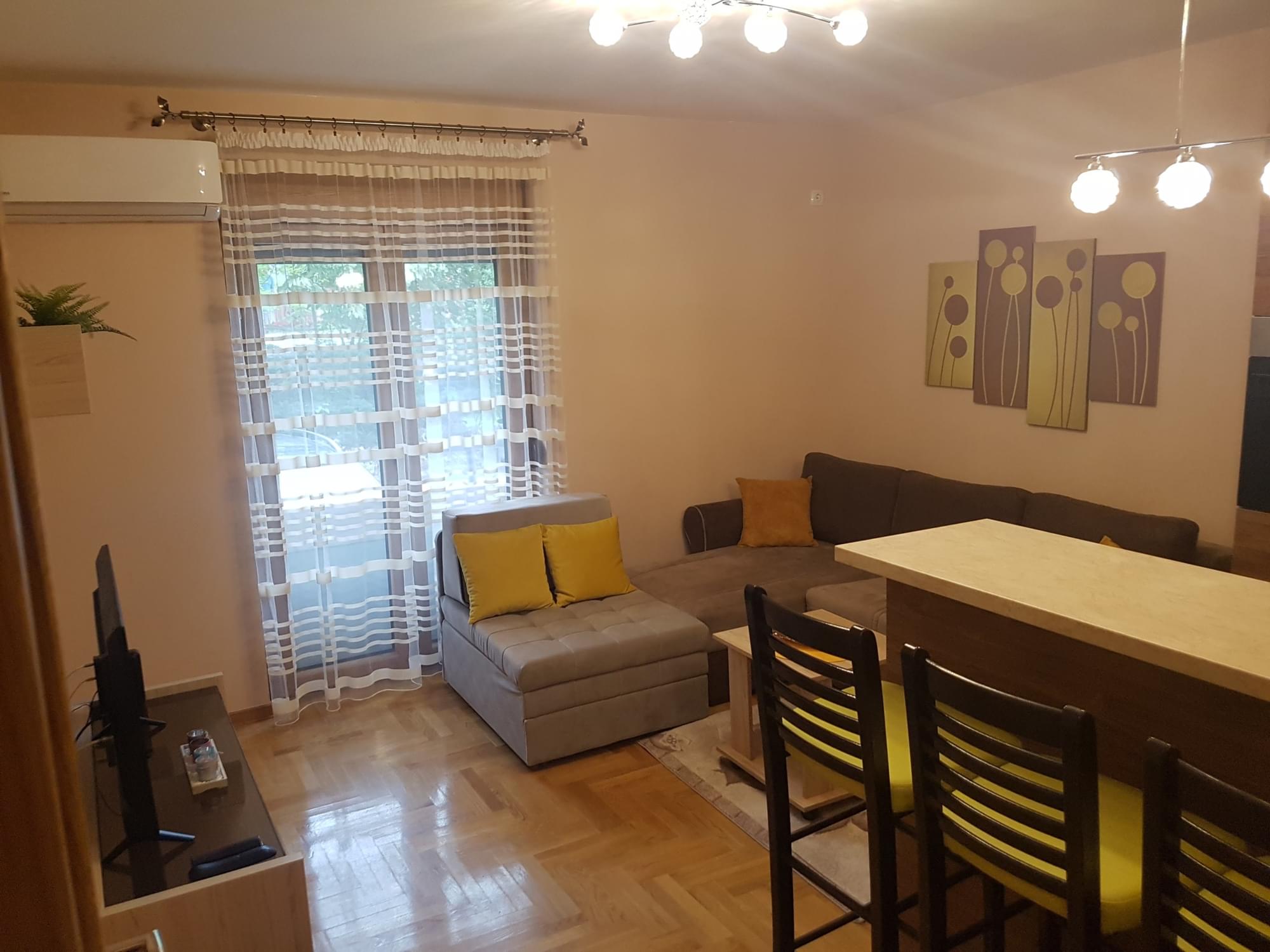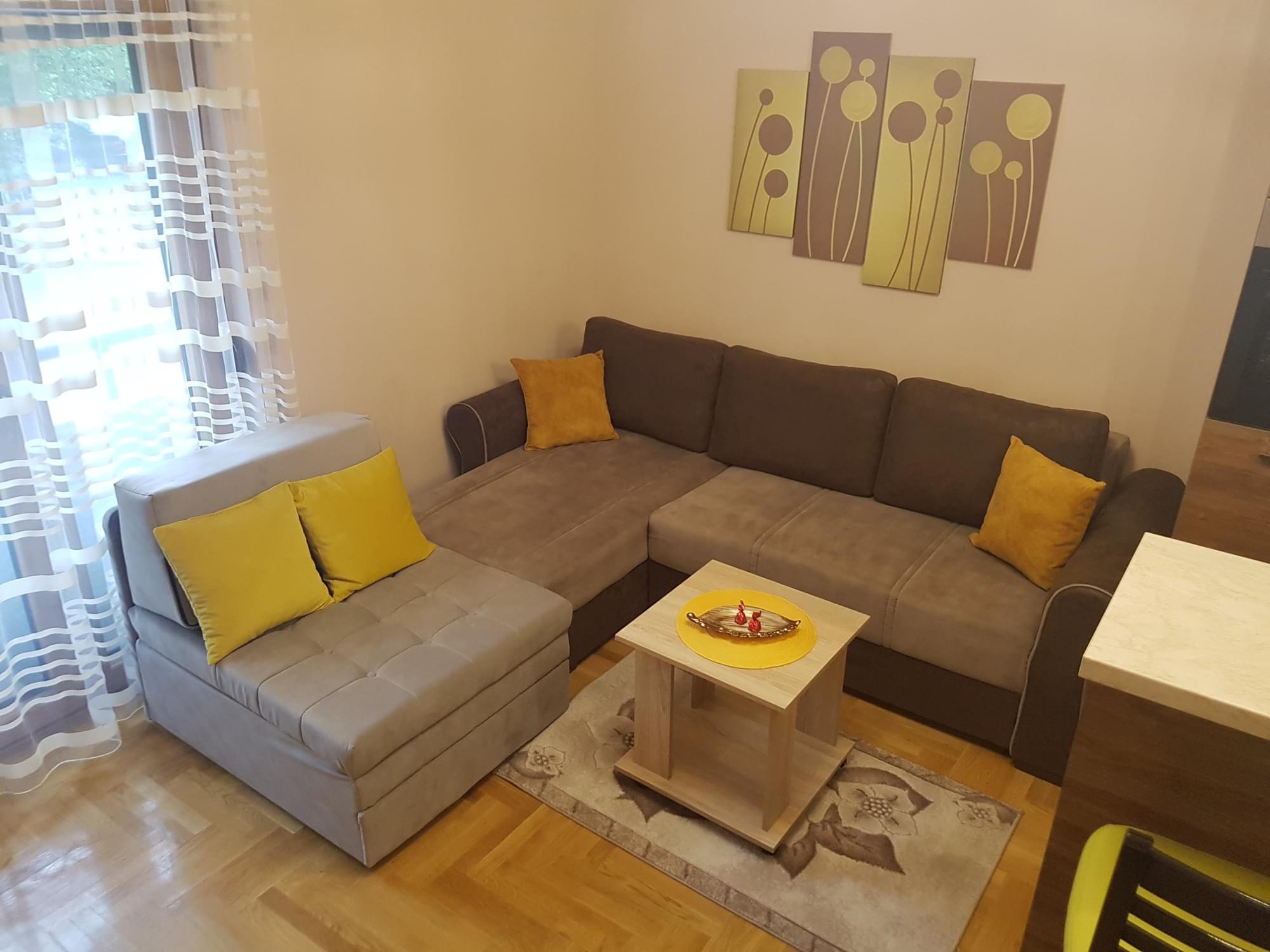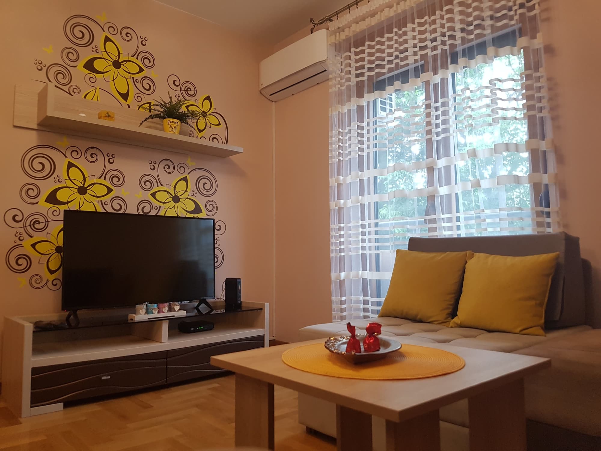 Apartman je studijskog tipa, 25m2, predviđen za troje odraslih ili dvoje odraslih i dete (obezbeđena fotelja na razvlačenje ili krevetac za dete). U apartmanu ima TV sa kablovskom, wi-fi, opremljenu kuhinju sa frižiderom, ugradnom rernom, ugradnom pločom. Obezbeđena posteljina, peškiri, fen za kosu i veš mašina. Apartman se nalazi u prizemlju novoizgrađene zgrade. Ispred zgrade je obezbeđen privatni parking samo za goste apartmana.