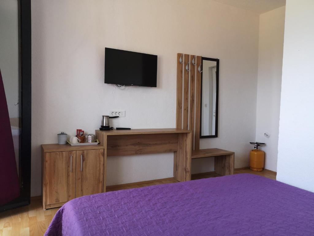 – Studio sa kupaonicom, internetom, parkingom, stolicama na terasu sa panoramskim pogledom na jezero, mini frižiderom, еlektričnom džezvom za kafu, čajnom kuhinjom s gasnim uređajem i priborom za jelo i piće, posuđem, posebnim ulazom, bračnim krevetom 200cm x 180cm, pogodno za parove.