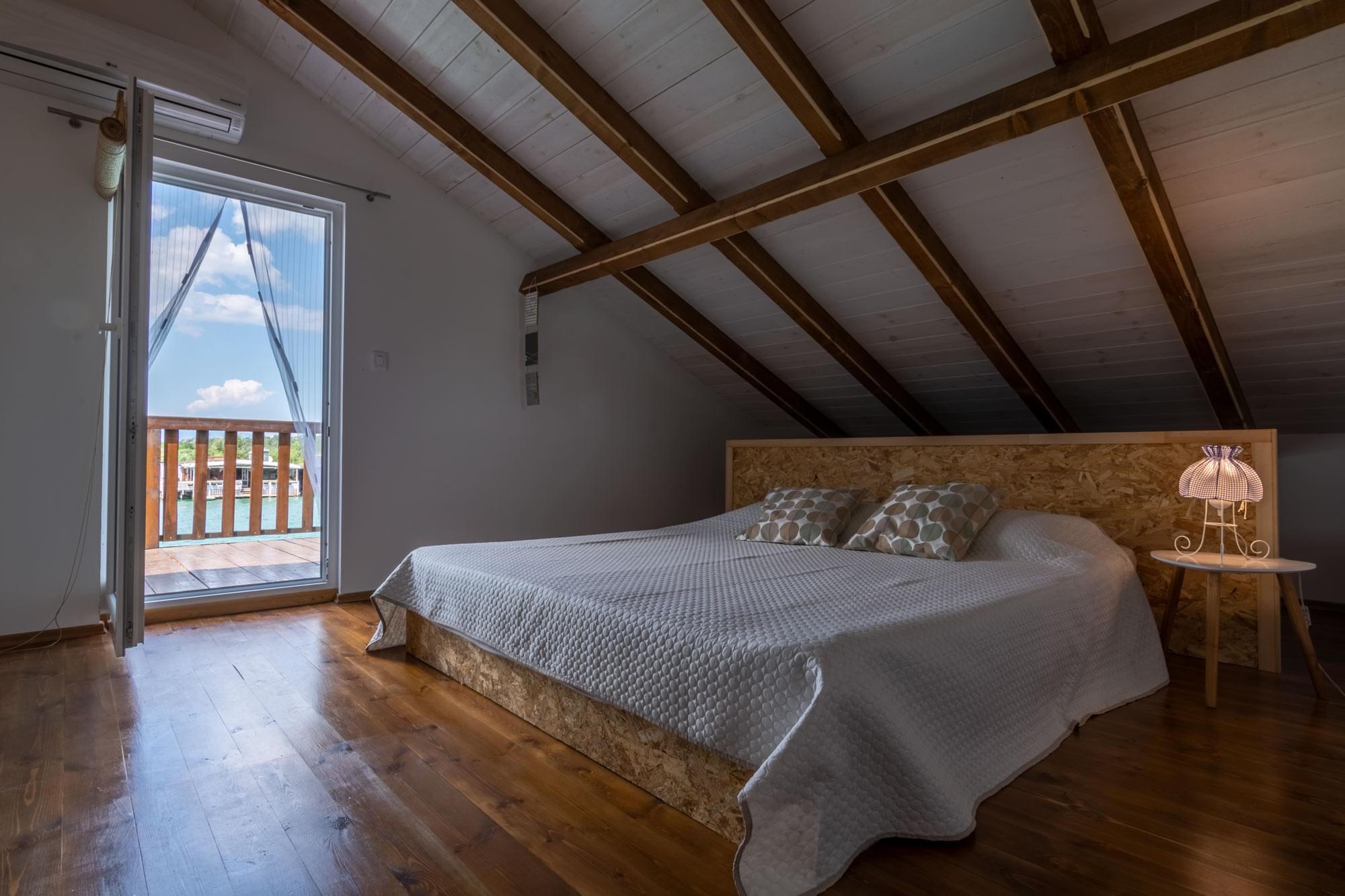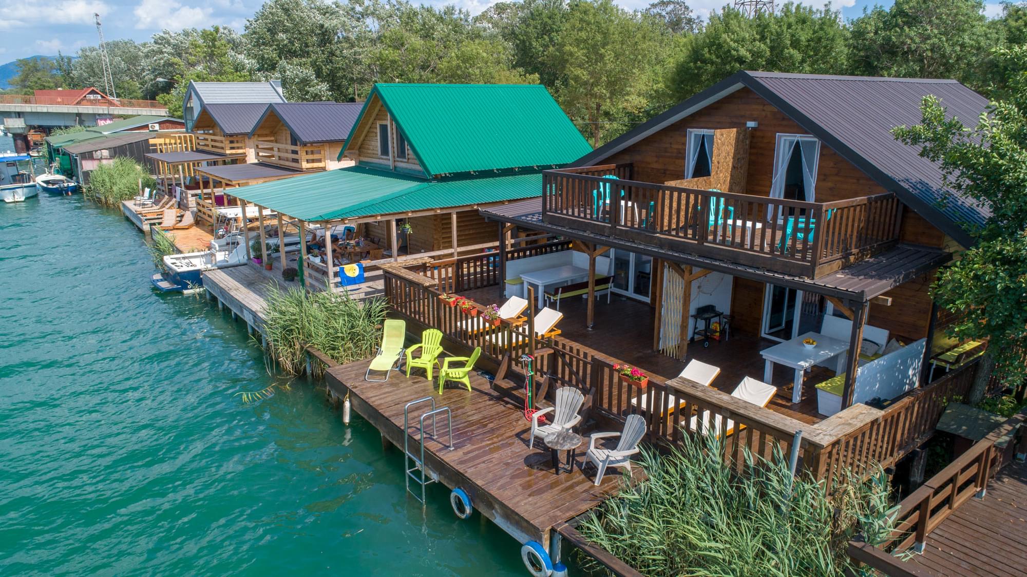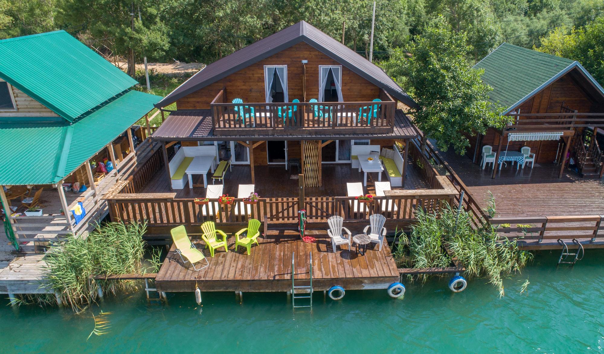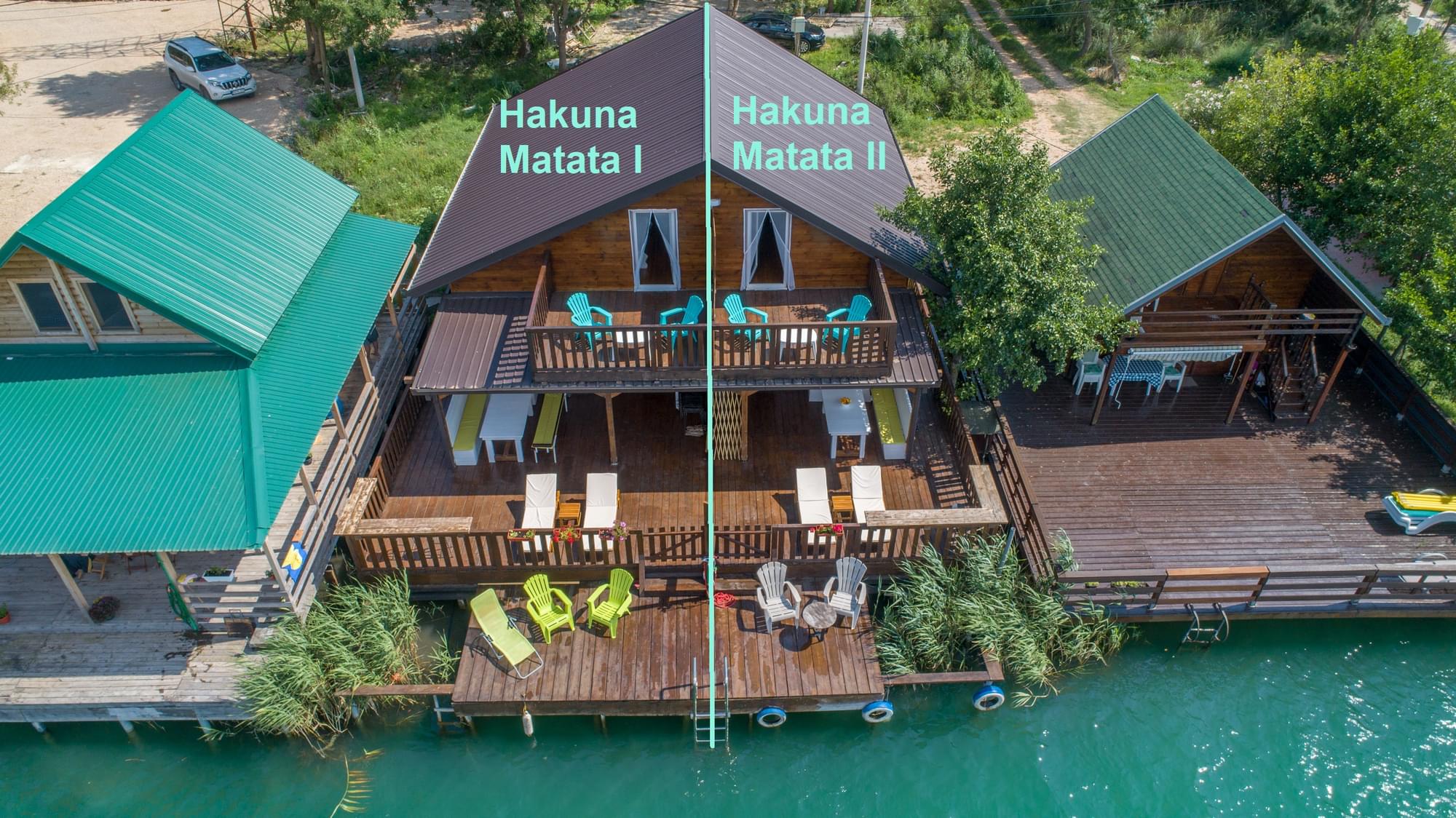 Hakuna Matata is luxuriously equipped two-story house with two separate apartments, located on the left bank of the river Bojana, on Ada Bojana island, downstream from the bridge 150 meters. Every room in the house has an air conditioning. Both apartments on the ground floor have living room, kitchen, bedroom and bathroom. The kitchens are fully equipped with inventory and appliances (dishes, stove, oven, fridge, dishwasher machine). Living rooms are connected to a covered terrace furnished with outdoor furniture, sun loungers, grill, bar.. Covered part of the terrace leads to the lower deck level for sunbathing with deck chairs and direct stairs for entering the water.
