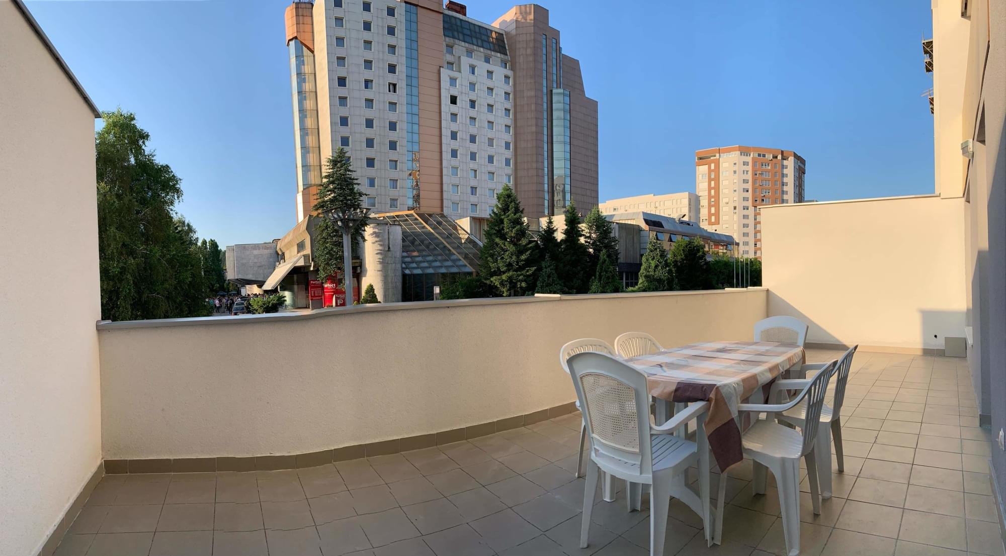 Stan posjeduje terasu od 30 kvadrata sa stolom i stolicama sa koje se pruža predivan pogled na okolinu.
