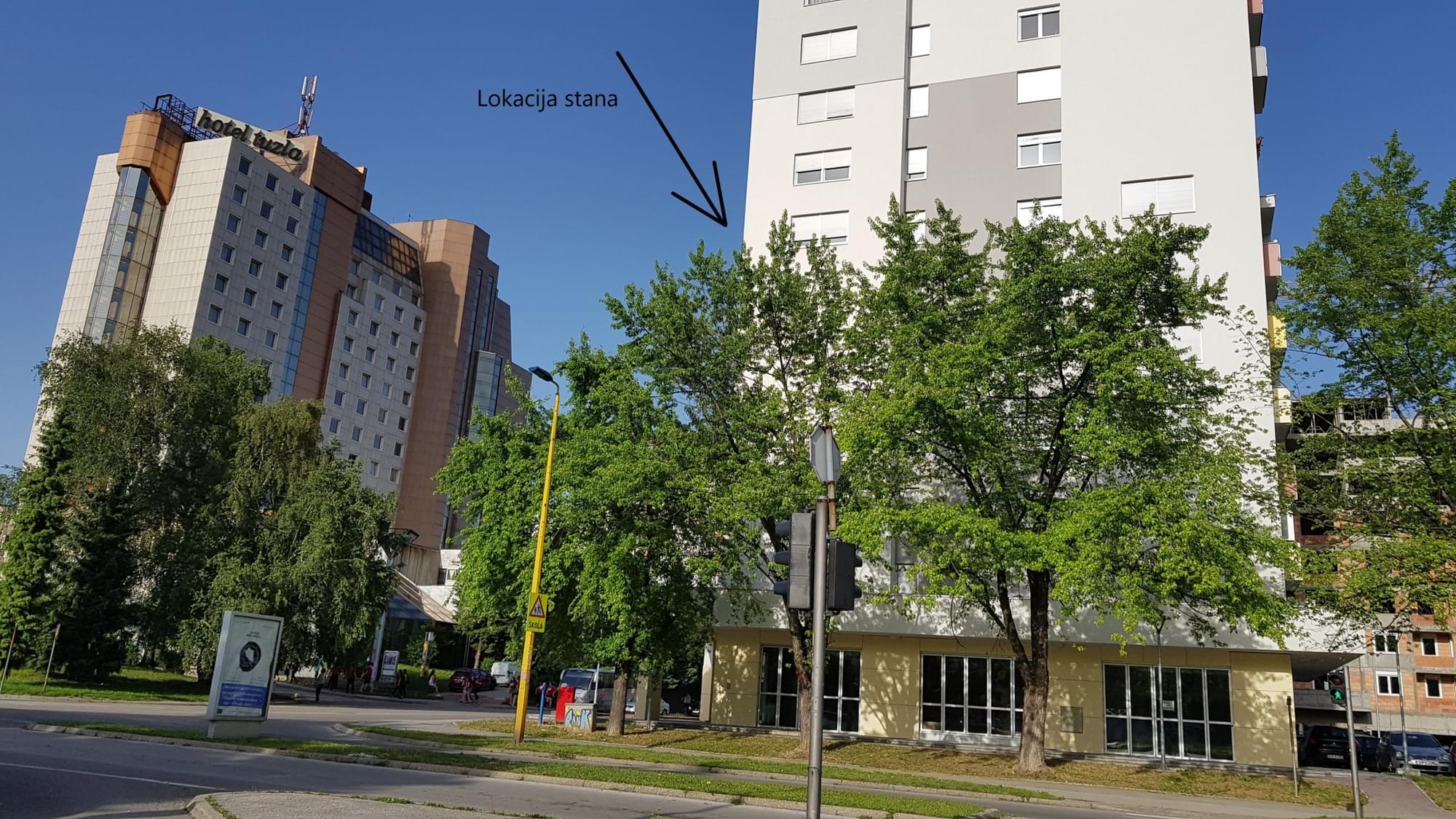 Stan se nalazi u elitnom tuzlanskom naselju Stupine, preko puta hotela Tuzla, u tek useljenoj zgradi sa dva lifta.