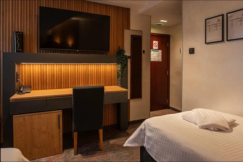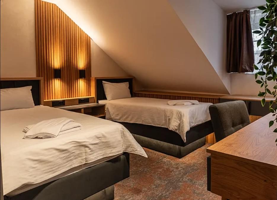 Hotel Astral in Šabac offers air-conditioned rooms with private bathrooms, hypoallergenic bedding, and free WiFi. Each room includes a work desk, seating area, and soundproofing for a restful stay. Guests can enjoy a bar and coffee shop, relax in the terrace or balcony, and take advantage of free toiletries and a mini-bar. Additional amenities include a 24-hour front desk, daily housekeeping, and express check-in and check-out services.