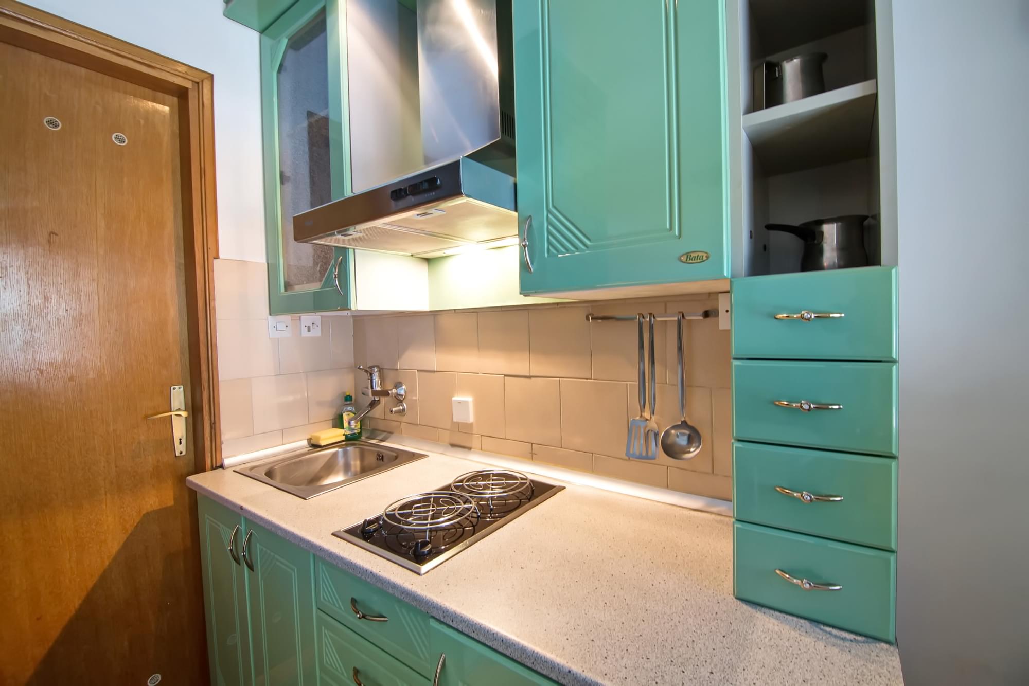Sprat se sastoji od tri spavaće sobe i kupatila (fen, set za peglanje, neophodna toaleta). U jednoj sobi je francuski ležaj, dok su u druge dve sobe po dva solo ležaja. Ukupna površina apartmana je 85 kvm.