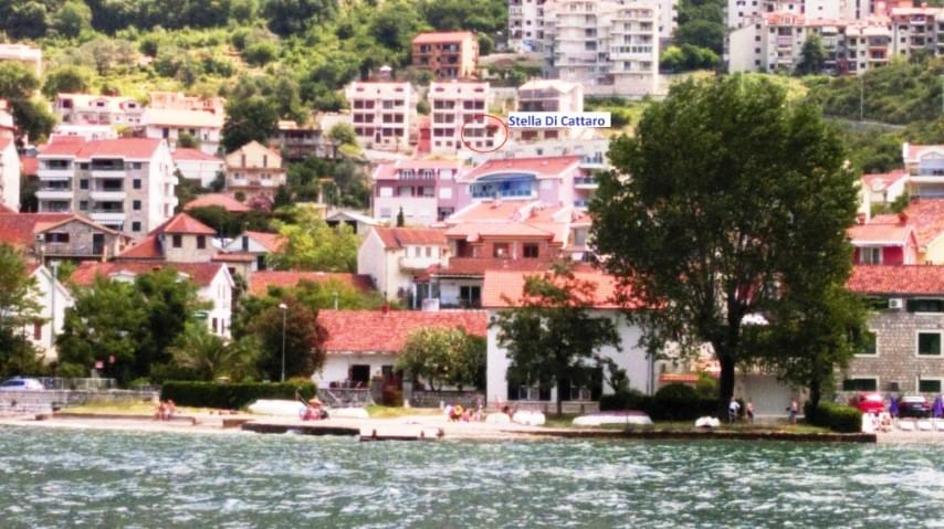 Apartman “Stella di Cattaro” se nalazi u Kotoru, Dobrota, 300m od mora i površine 77m2. Stan je moderno opremljen, klimatizovan kompletno i sadrži :kuhinju sa svim potrebnim uređajima, veliki dnevni boravak (sa full TV, Audio, Video uređajima), dvije spavaće sobe od kojih u jednoj se nalazi bracni krevet a u drugoj tri single kreveta (sa opcionim 4tim) i kupatilo opremljeno tus kabinom, mašinom za veš i fenom. Stan posjeduje veliku terasu sa predivnim pogledom na more. Terasa je opremljena tako da se može istovremeno uživati u pogledu na more i ručati, dok u večernjim satima se može koristiti drugi dio terase opremljen baštenskom garniturom i uživati u romantičnim noćima i pogledu na prekrasan zaliv.