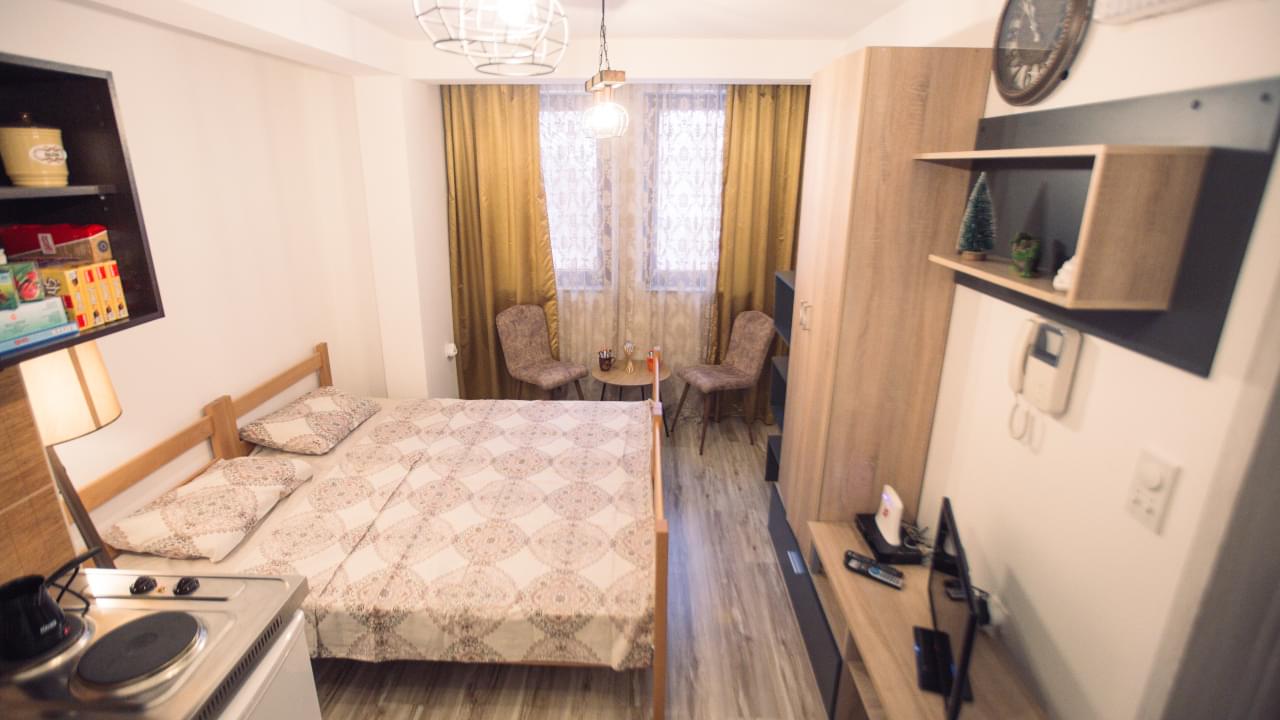 Studio Aber A7 je smeštajnog kapaciteta za 2 osobe. Kompletno je opremljen za samostalan boravak. Nalazi se na prvom spratu objekta Mujen Comfort. Pogodnosti ovog smeštaja je parking, blizina Bus stanice, marketa i Hotela Mujen Lux. Naši gosti imaju popust od 10% u restoranu i 20% u Spa centru Mujen Lux-a.