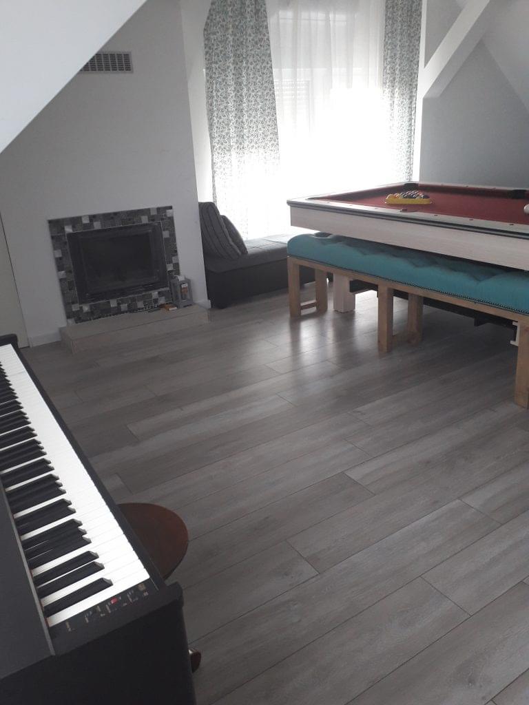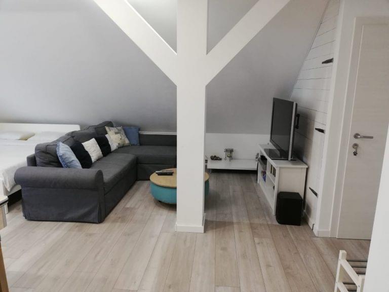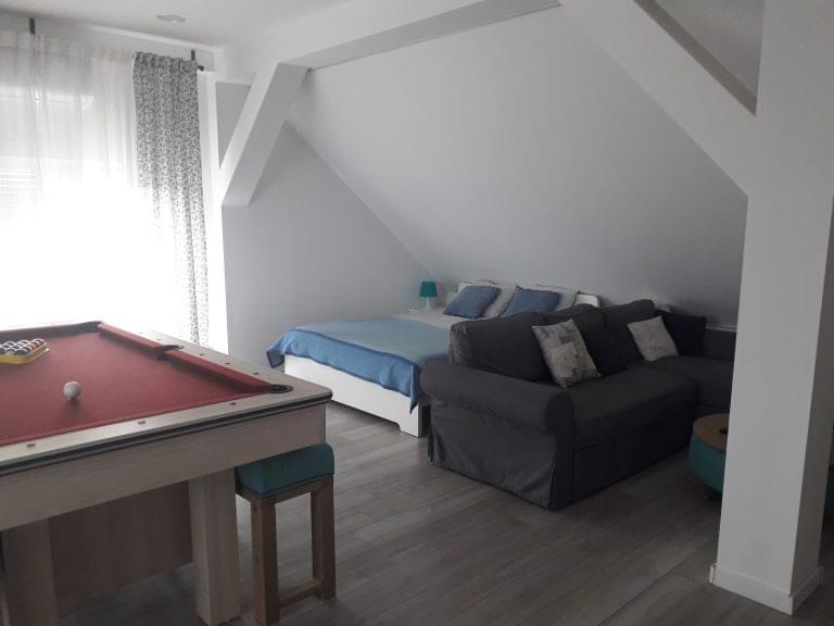 New, modern, spacious bright apartment on the 2nd floor near Zagreb. The apartment consists of an entrance hall, living room with balcony, kitchen with dining area, bedroom and bathroom with terrace. The apartment is air conditioned, with central heating, equipped with modern light shades, all kitchen appliances, large 55 inch smart TV, washing machine and wireless internet. Additional facilities such as a billiards table and a table tennis table are also available. Parking space is included. It is possible to use the garage at the request of the guest. The apartment has a beautiful view of the entire city of Zagreb and is surrounded by greenery. Distance from Zagreb is about 20 minutes by car to the outskirts of the city or by train 15 minutes drive to the city center. Only 15 minutes away from the apartment are the smaller towns of Samobor and Jastrebarsko.