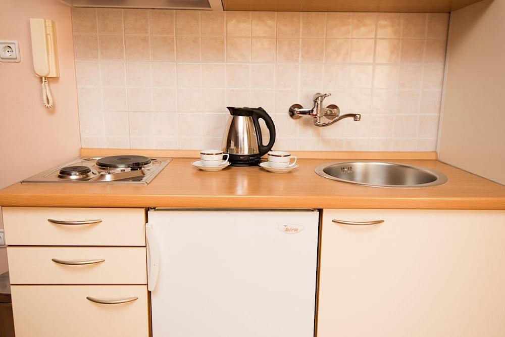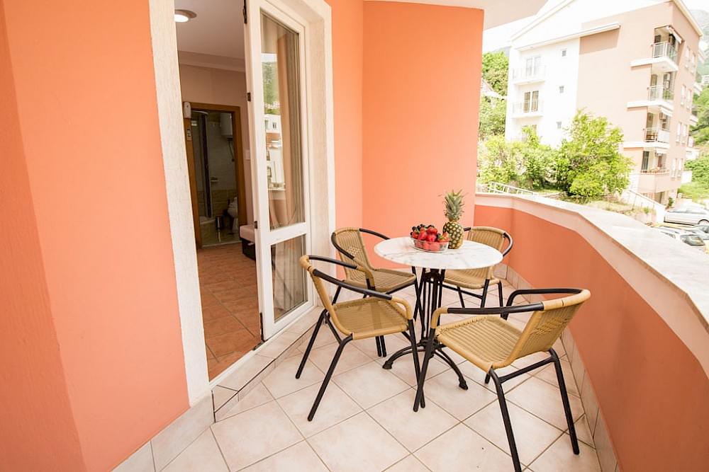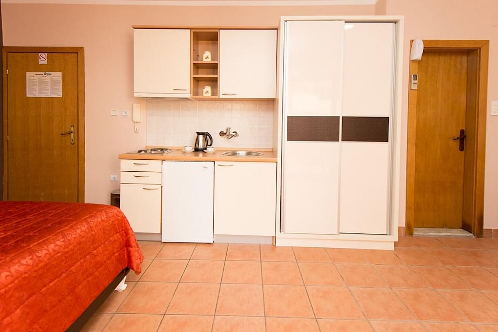 Studio apartment with kitchen, one double bed one single bed and one sofa bed. Apartment for 2-4 persons. Two balconies.