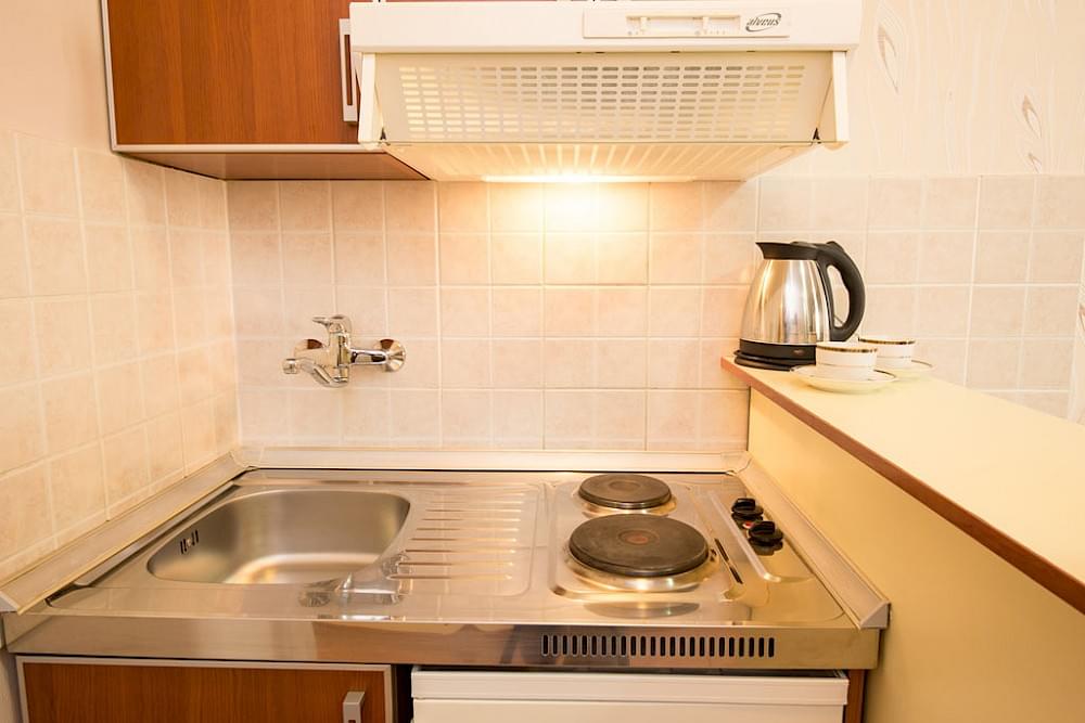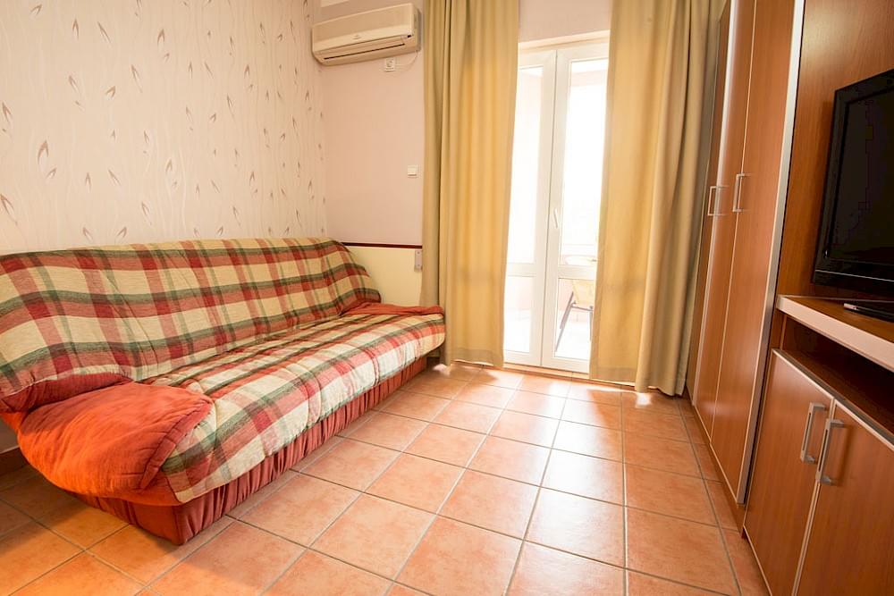 Apartment with kitchen, one double bed and one large sofa. Apartment for 2-4 persons. View of the mountain.