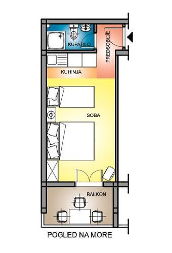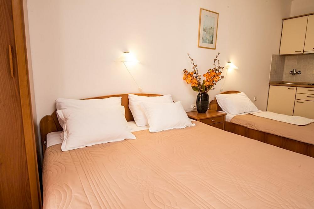 Studio Apartment with a kitchen in one room. One king size and one single bed. Balcony with nice view.