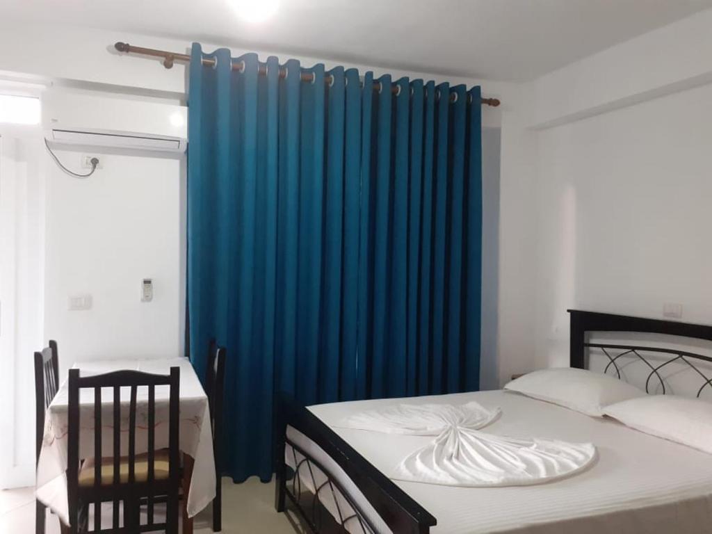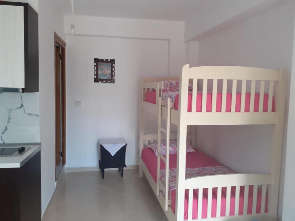 Dhoma e përshtatshme për dy të rritur e dy fëmij krevat dopio dhe krevat marinar, me kuzhin e banjë dhe ballkon.