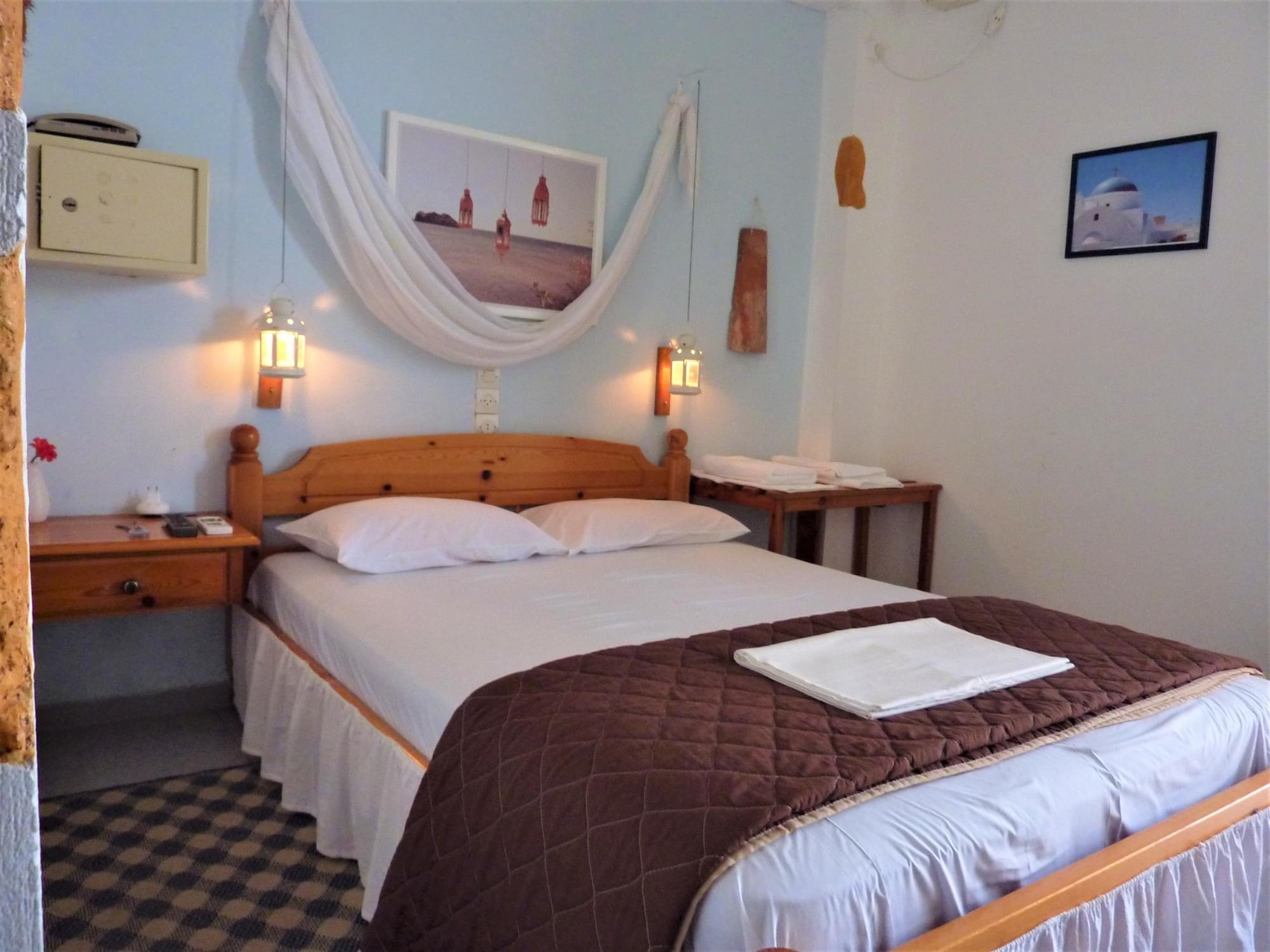 You can heat/cool the room with the air condition or the fan (in summer) or for more healthy you can just leave open the doors and let in the fresh air. The room is decorated with traditional Greek island style. In the room is a king size bed and other facilities as help desk, bedside table and closet.