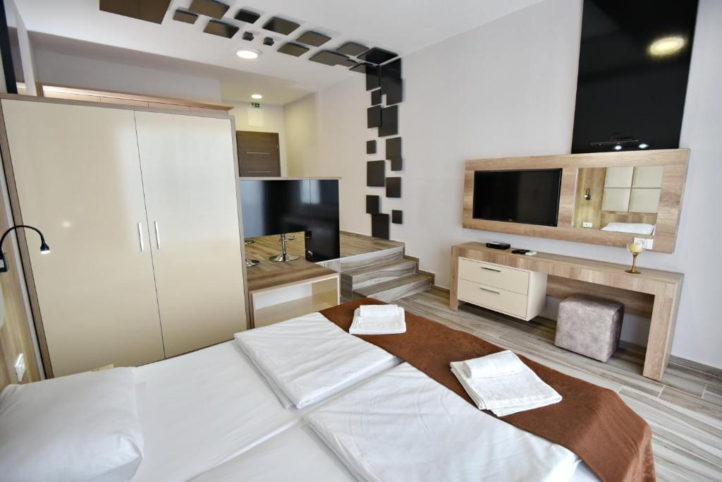 All units are air-conditioned and have a flat-screen TV and a balcony with views of Lake Ohrid. There is also a kitchen in some of the units, fitted with a dishwasher and oven and a private bathroom with free toiletries and a hairdryer in every unit. Each unit is facing Ohrid Lake.