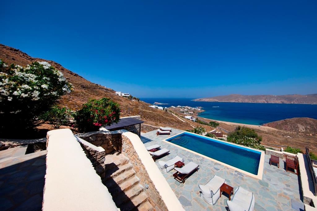 The villa enjoys a privileged position with extensive sea view over the Aegean Sea and the northern coast of the island, which unveils the true beauty of Mykonos Greece original landscapes. It is ten minutes away from Mykonos town and near to island’s cosmopolitan attractions.