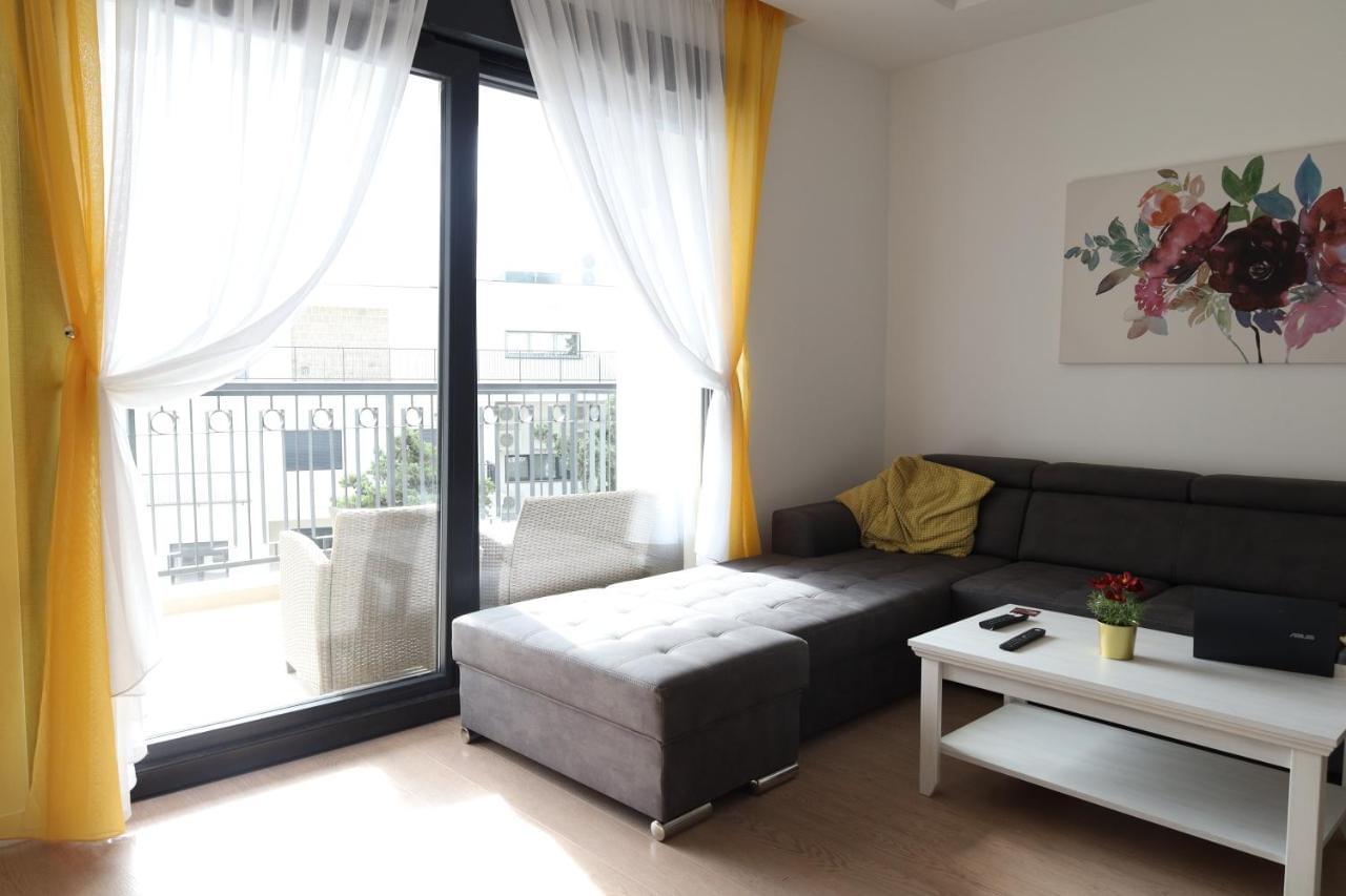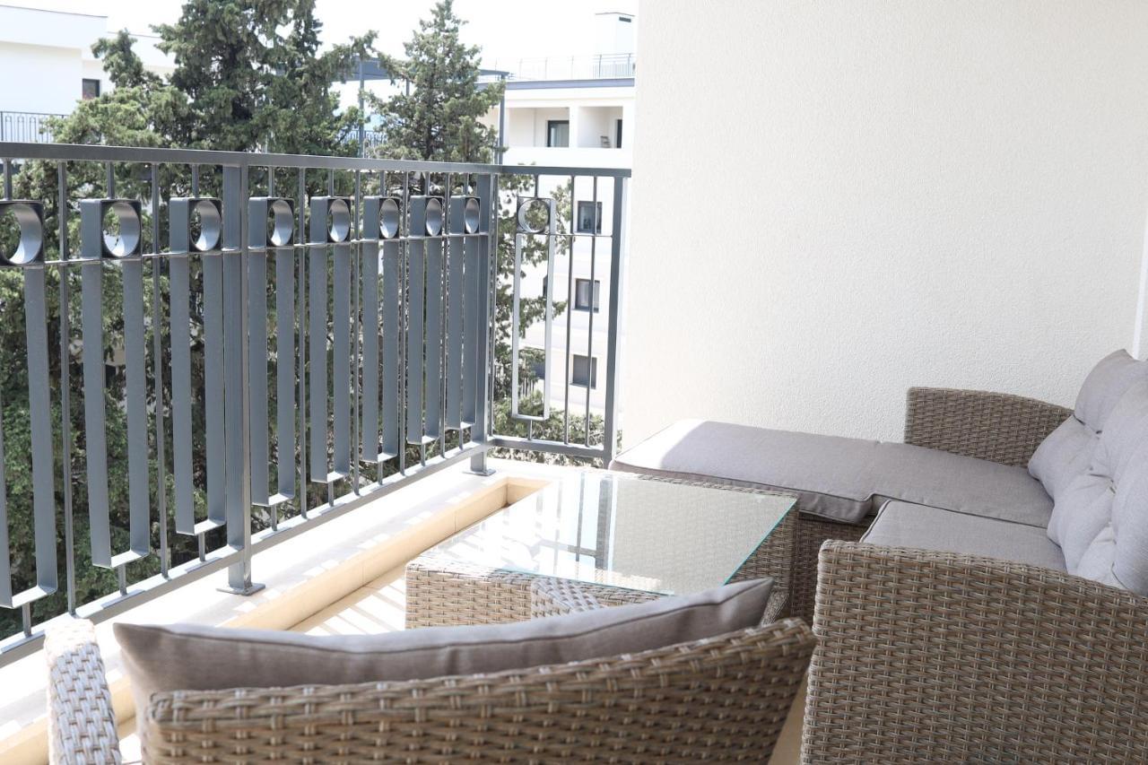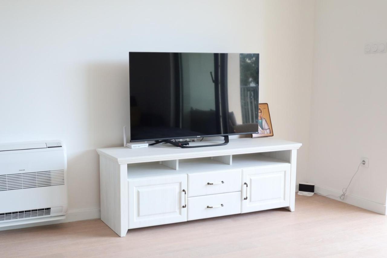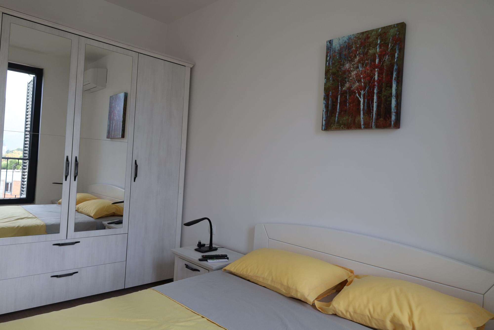 Fully south-facing, well-equipped apartment in a new building with 2 bedrooms and 2 bathrooms. Each room has a double bed. Huge living room with kitchen, large terrace with seating. A folding sofa in the living room.