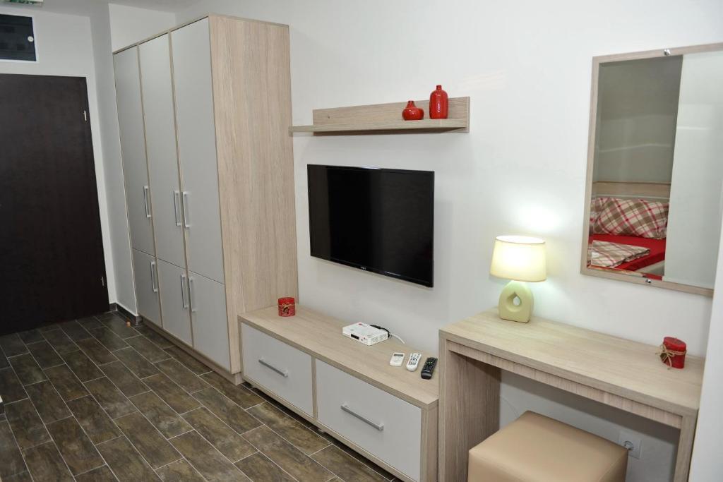 All units are air-conditioned and have a flat-screen TV and a balcony with views of Lake Ohrid. There is also a kitchen in some of the units, fitted with a dishwasher and oven and a private bathroom with free toiletries and a hairdryer in every unit. Each unit is facing Ohrid Lake.