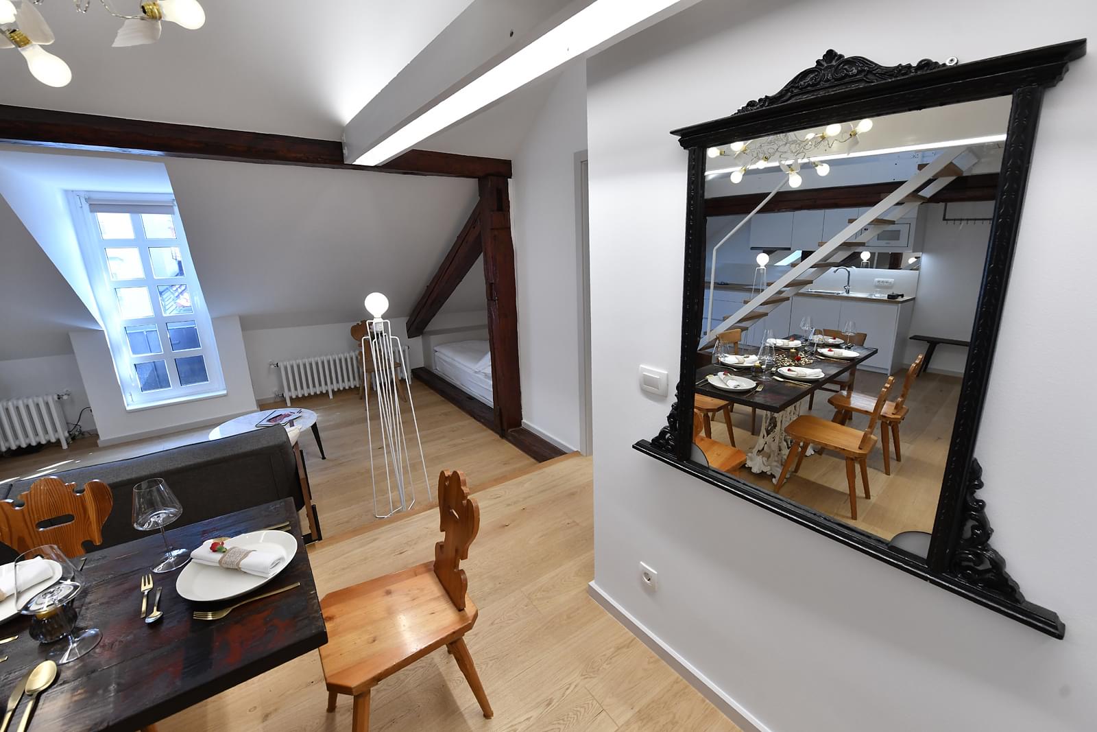 The apartment is located on the third floor of a bourgeois house and offers you magnificent views from Ljubljana Castle, across the river Ljubljanica, all the way to Tromostovje. It is distinguished by its lightness, softness and mysterious fairy-tale, which will provide an unforgettable vacation. It is equipped for seven persons, with two bedrooms, bathrooms and a kitchen with living room.