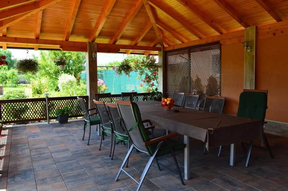 The villa is directly connected to the beautifully landscaped garden, rich with flowers and various types of fruit. Within the garden there is a large summer terrace under the roof of a size of 60 m2, equipped with kitchen, TV, wi-fi, water cooler, ceiling fan and two barbecue grills. Within the summer terrace there is an outdoor bath with a hamam. Also, the villa has its own parking, size of 250m2, with garage space.