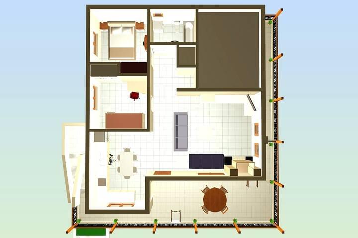 Vacation house provides a very big balcony with South Eastern Orientation.