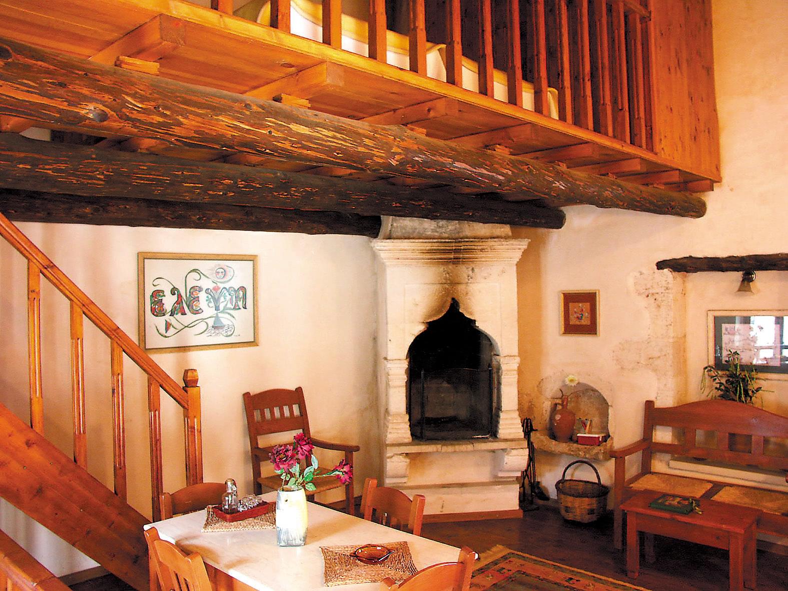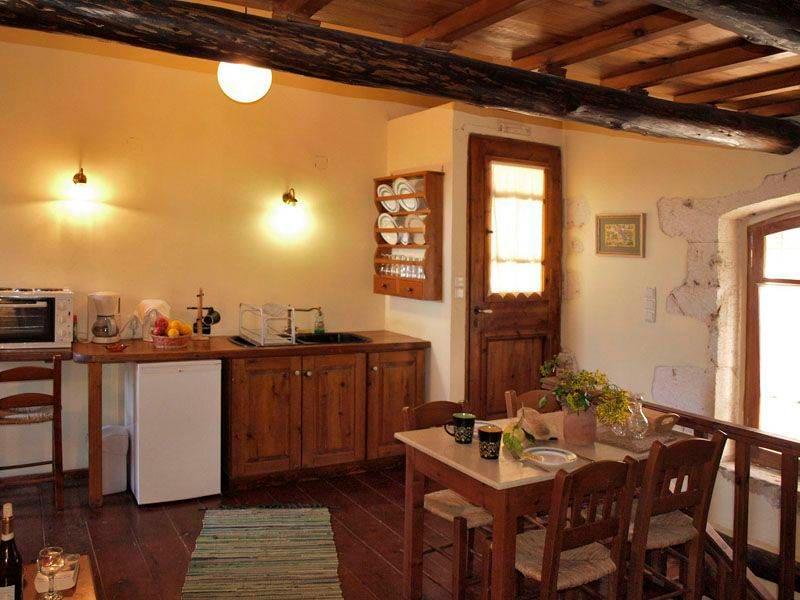 The two houses are built in a country style on three levels. On the first level you will find the traditionally furnished sitting and dining room with a fireplace, a fully equipped kitchenette, tv and a/c, while the beautiful veranda offers mountain and village view. Wooden steps are leading up to second level where lies an open sleeping gallery with two separate beds. Other steps leading down to ground level, where you will find the second bedroom with a double bed and a bathroom with shower.