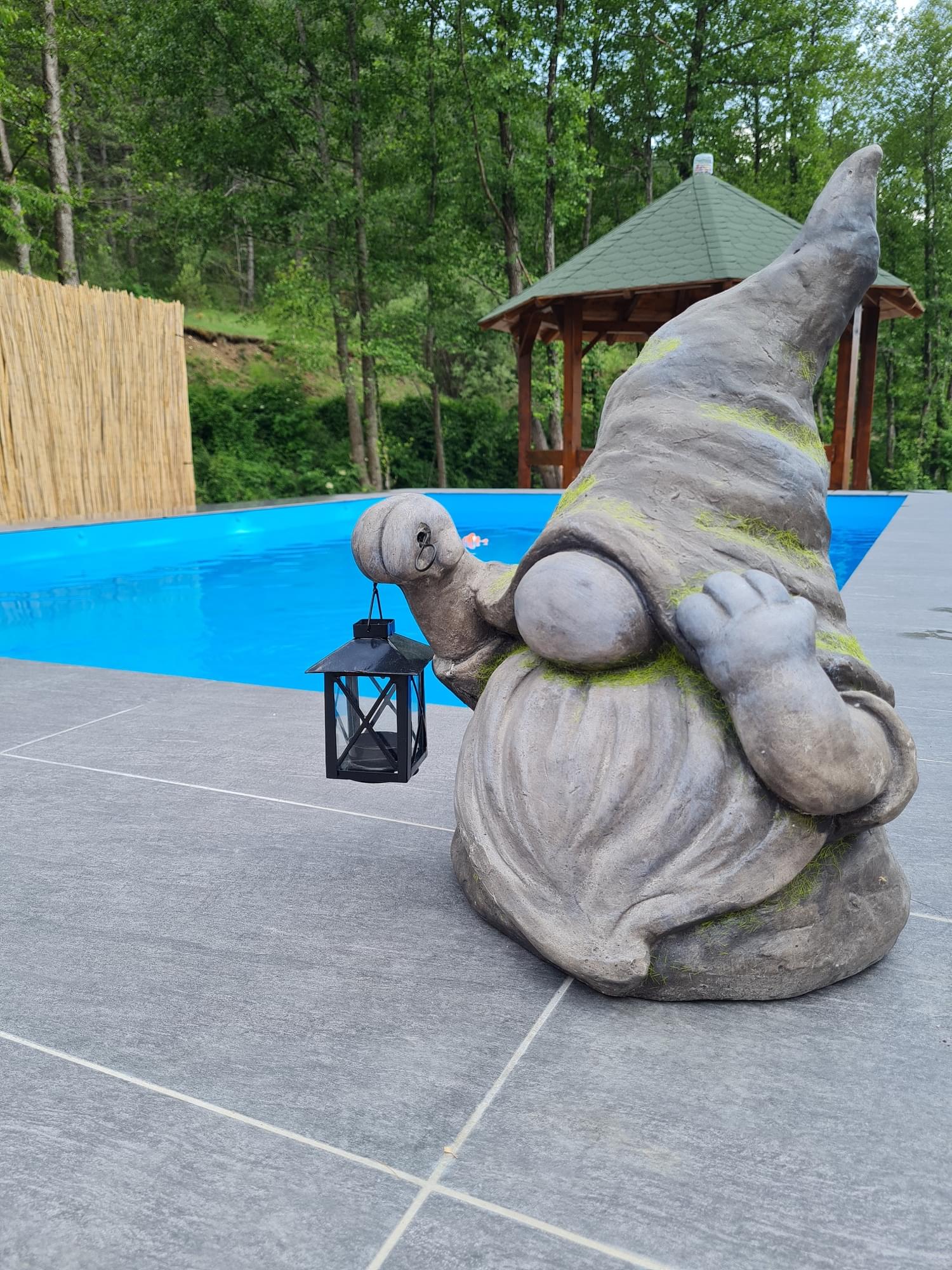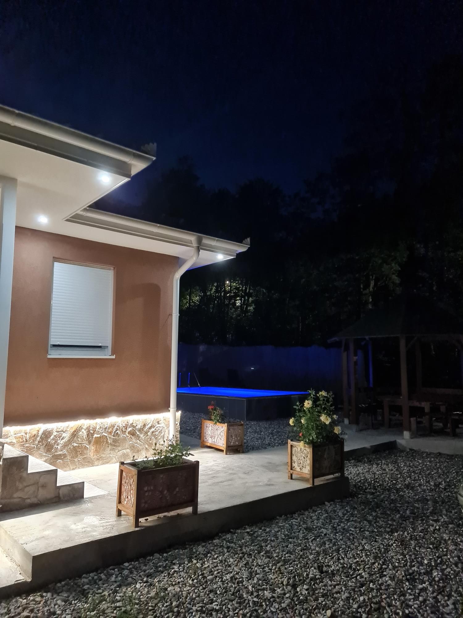 Ispred kuće se nalazi prostrano dvorište kao i letnjikovac u kome se moze ispijati prva jutarnja kafa sa pogledom na bazen i zvuk reke koja protiče kraj objekta.
