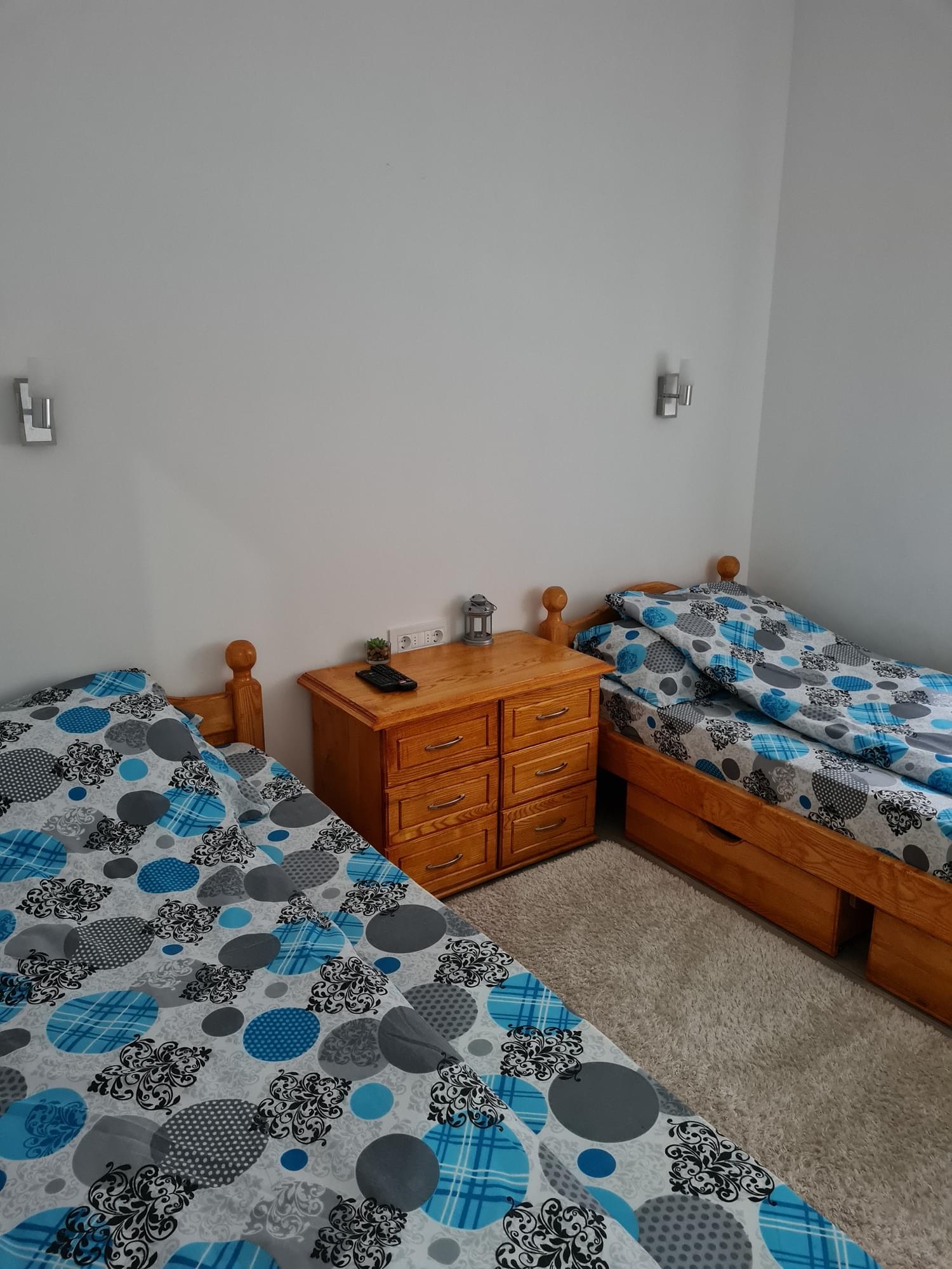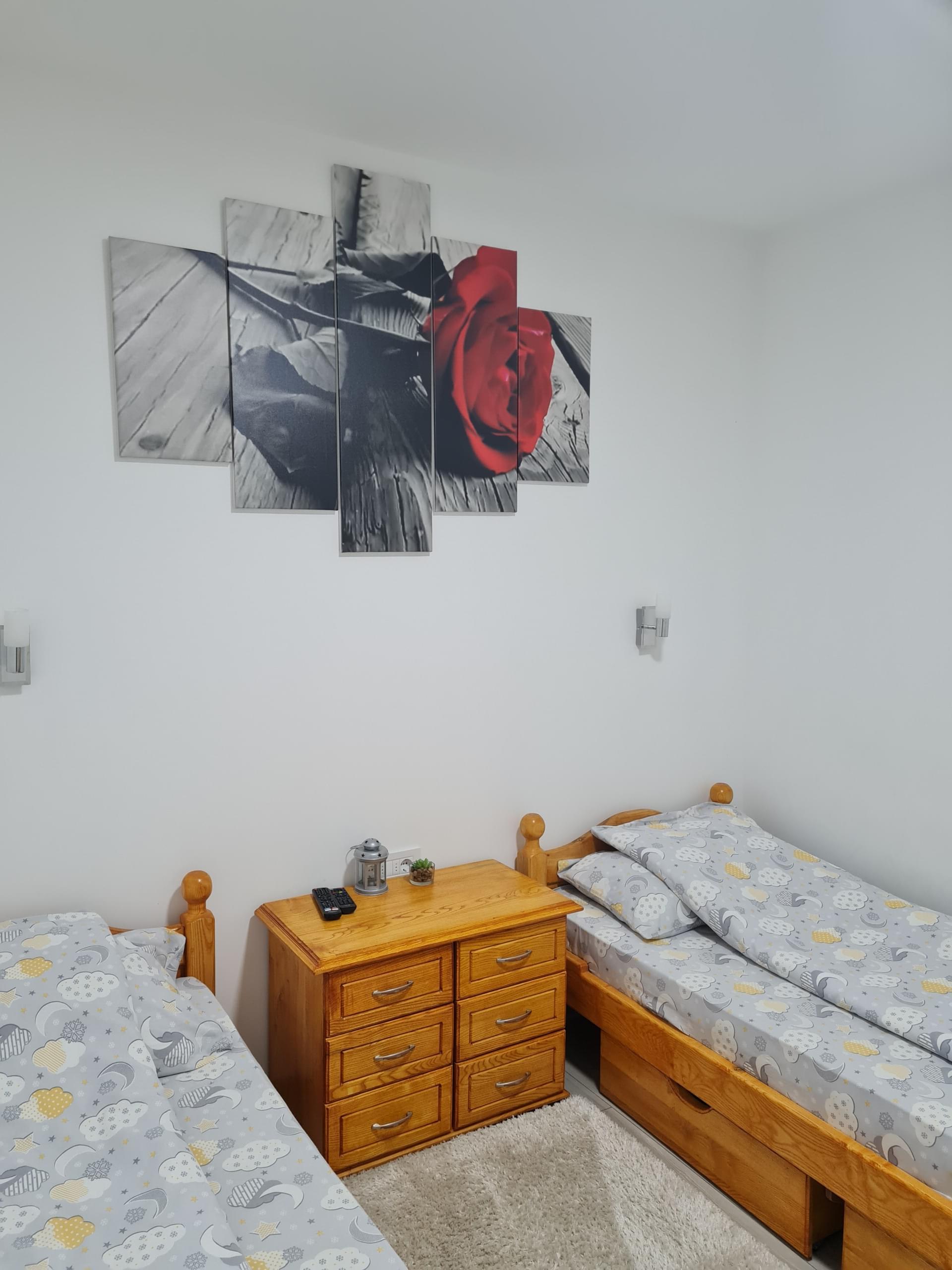 Objekat raspolaže i sa dve spavaće sobe, jedna ima dva kreveta samca, a u drugoj je veliki bračni krevet. Toalet je opremljen sa tuš-kabinom i svim potrebnim toaletnim priborom i peškirima.