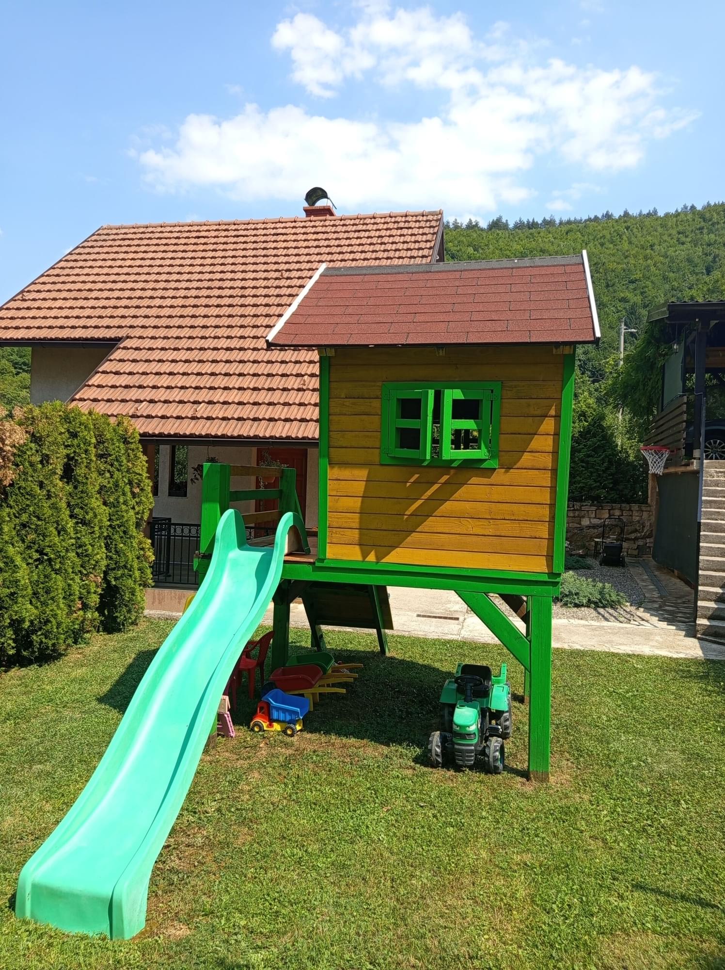 Vikendica je smještena 5 km od centra Zenice, na mirnom mjestu, okružena zelenilom i lijepim pogledom na grad Zenicu. Ukoliko želite miran i udoban boravak ovo je pravo mjesto. U objektu se nalazi sve što je potrebno, peškiri, posteljina, toalet papir, ubrus za ruke, kafa, čaj, so, ulje te ostali začini da ne morate ići u kupovinu sitnih stvari.