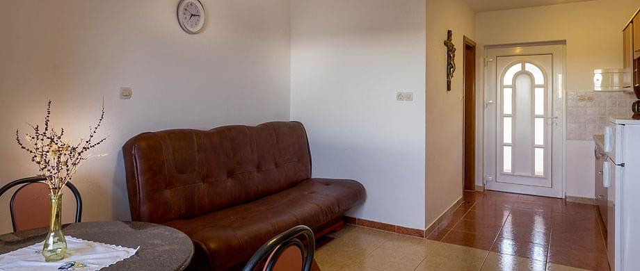 Located on the ground floor of the building, the apartment 2 for 4 People consists of a separate bedroom, a fully equipped kitchen, dining room and living room and bathroom.The apartment has its own terrace overlooking the sea and the landscape. The apartment has access to a swimming pool and an outdoor terrace, and it’s available free parking. Wi-Fi is available in the apartment at an additional cost. The surface area of the apartment is 40 m2