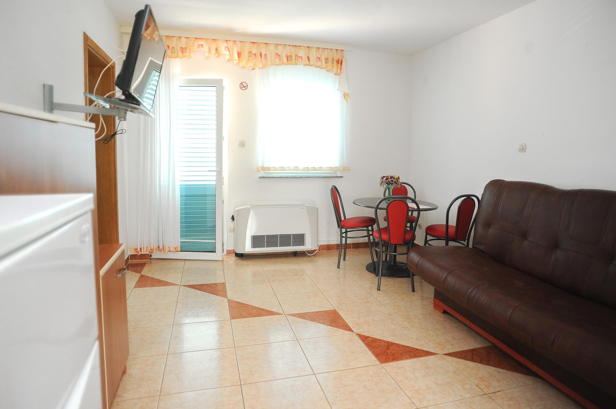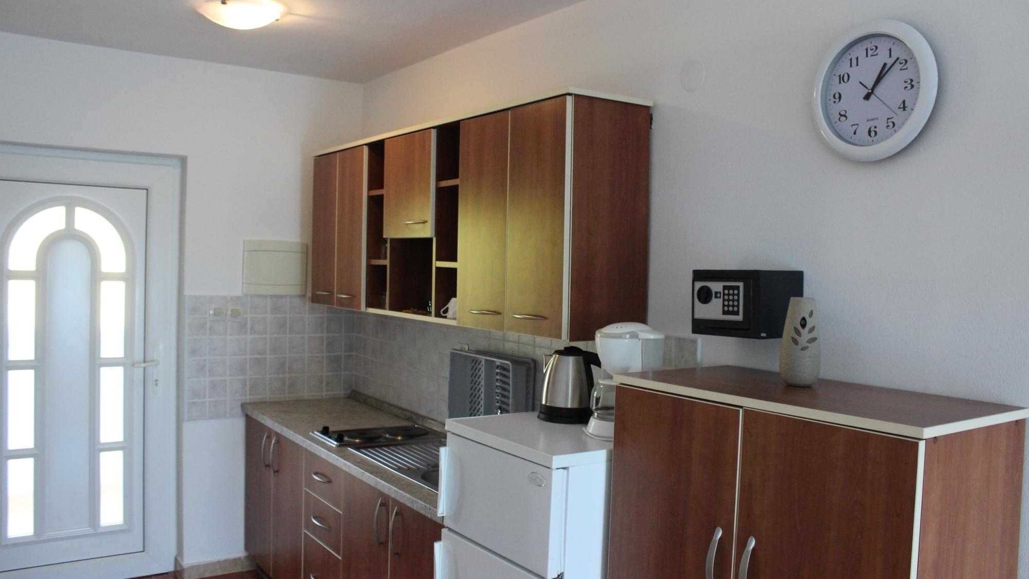Located on the first floor of the building, the apartment 6 for 4 People consists of a separate bedroom, a fully equipped kitchen, dining room and living room and bathroom.The apartment has its own terrace overlooking the sea and the landscape. The apartment has access to a swimming pool and an outdoor terrace, and it’s available free parking. Wi-Fi is available in the apartment at an additional cost. The surface area of the apartment is 40 m2