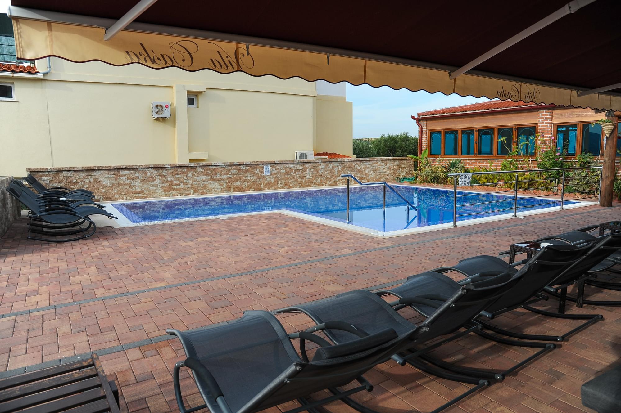 Vila Caska is an attractive building with 12 apartments, that can accommodate 58 people. The villa is located 300 meters from the beach Caska, and Zrće beach is 800 meters, 15 min walked from the house. Within the building, there is an outdoor pool with a furnished terrace for the entertainment of all ages, a spacious restaurant with a wide range of local dishes, pizza, grilled dishes and specialities from the wood-fired oven. Villa has parking for every guest.