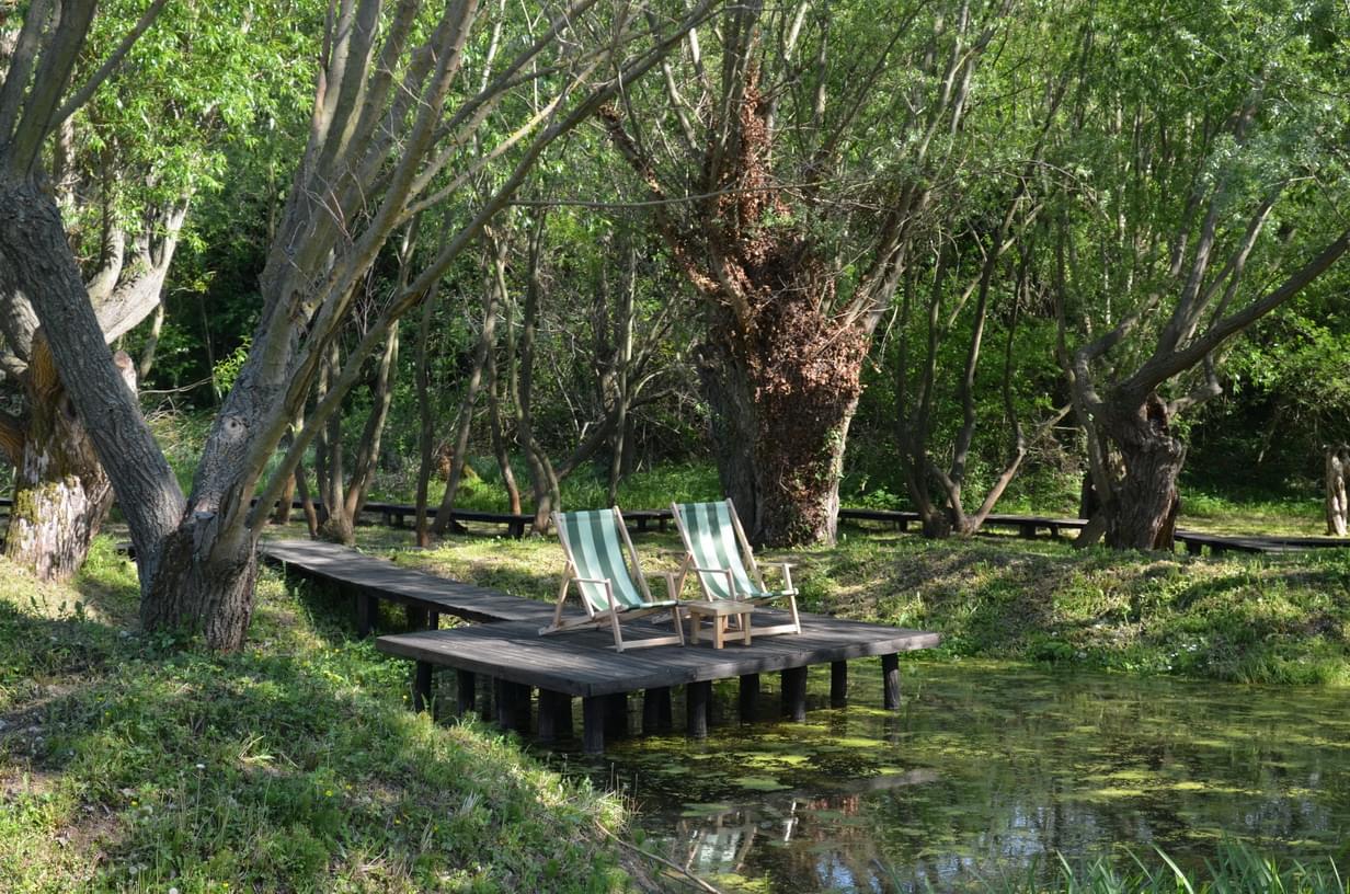 Nalazimo se nadomak nacionalnog parka Fruška gora, udaljeni od naselja, van svih puteva. Posvećeni smo obnovljivim izvorima energije, pa struju obezbeđujemo zahvaljujući sopstvenom foto-naponskom sistemu. Vodu crpimo iz izvora koji se nalazi na našem imanju.