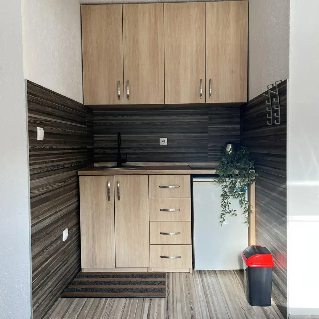 Studio apartman za dvije osobe, ukupne površine 20 m2. Sastoji se od dnevne sobe koja posjeduje ugao na razvlačenje, kupatilo i mini kuhinju.