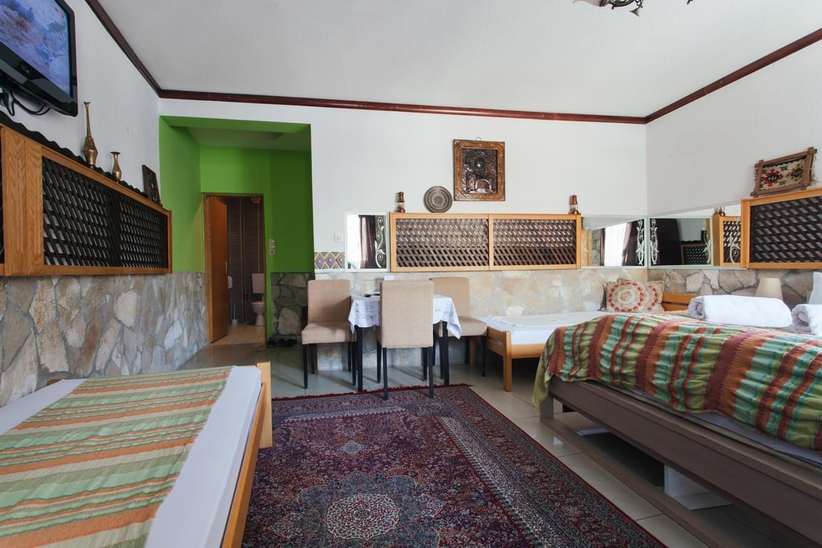 Surrounded by a Mediterranean garden, the Villa Anri is furnished in a mix of modern and traditional design, featuring eco-friendly materials like solid wood, stone, brick and wrought iron. All rooms are air conditioned and have a cable TV. Some rooms also come with either a small balcony or a spacious terrace.