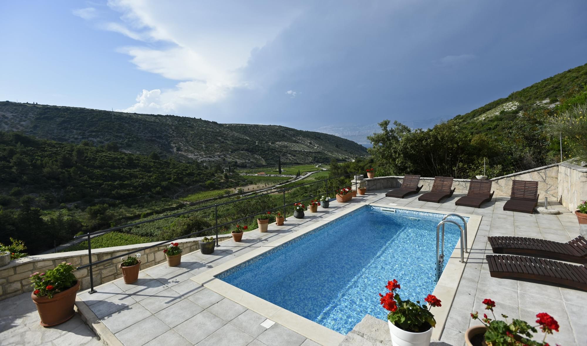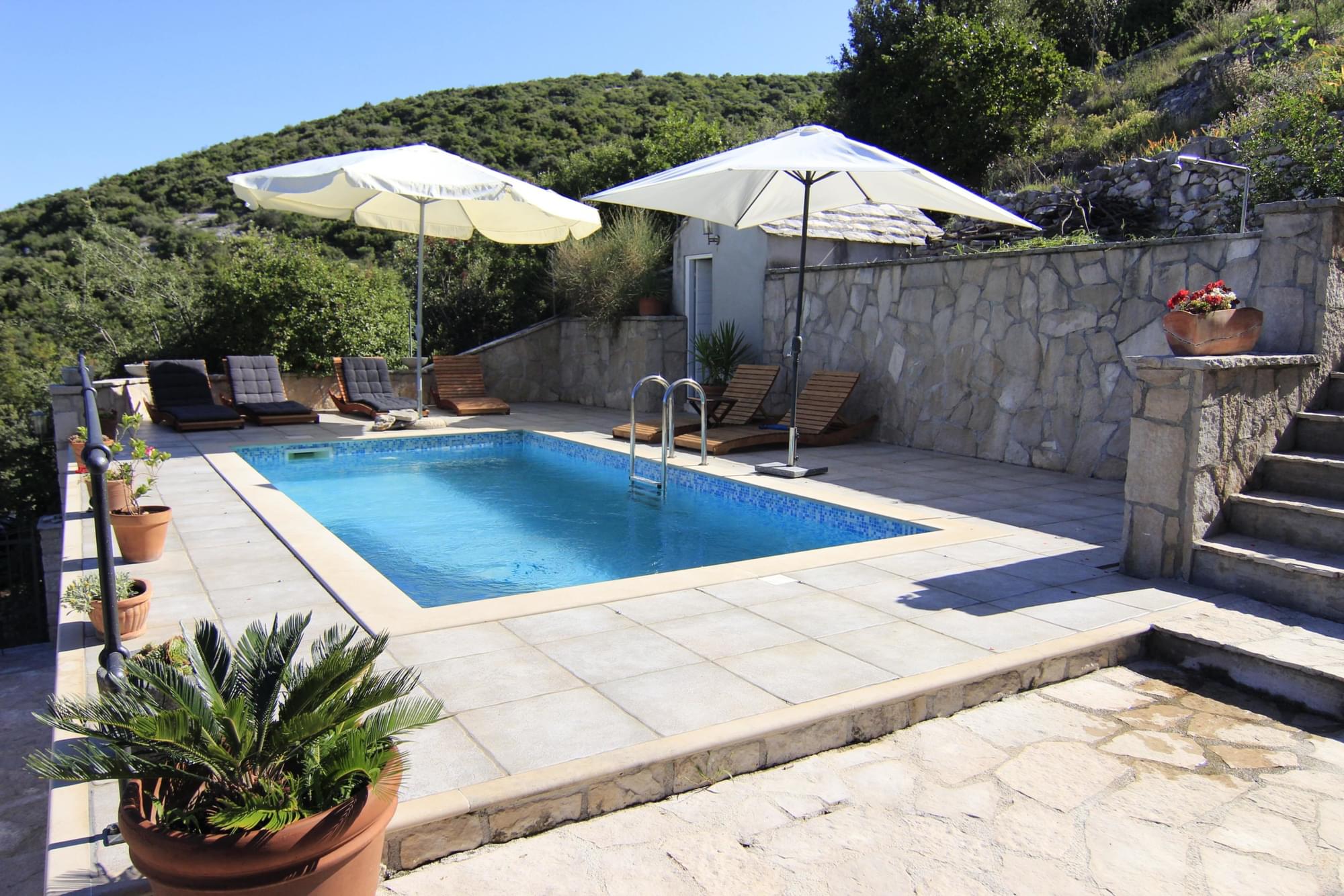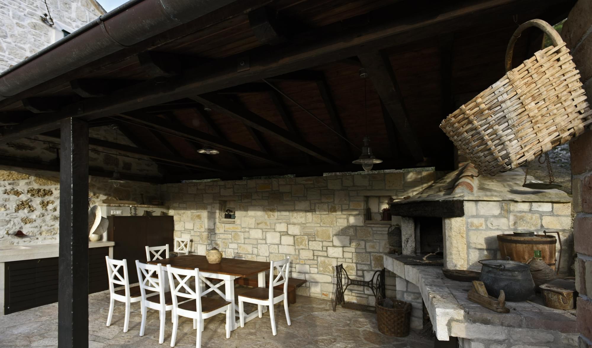 The terrace made of stone is equipped with old-fashioned fireplace, including traditional Dalmatian bell for baking bread and preparing food.With pool and a beautiful view it makes unique combination of wilderness and human-made features suitable for secluded adventure, romantic excursions, family holidays and numerous variety of trips and exploration.