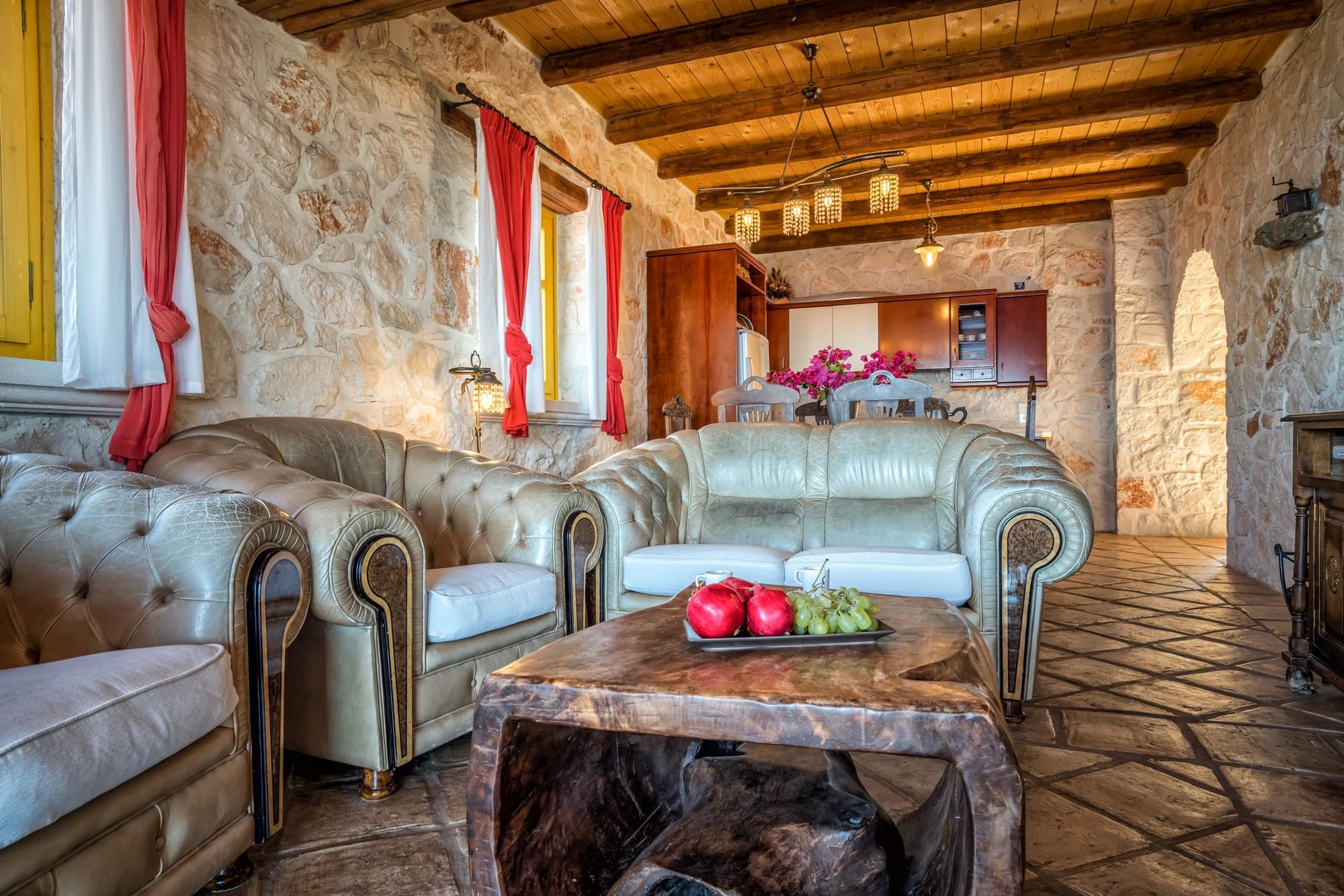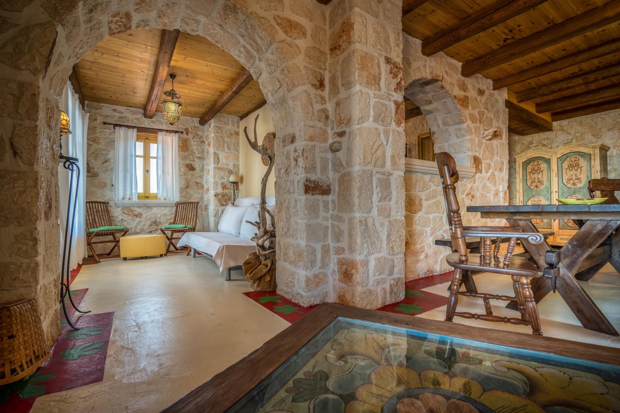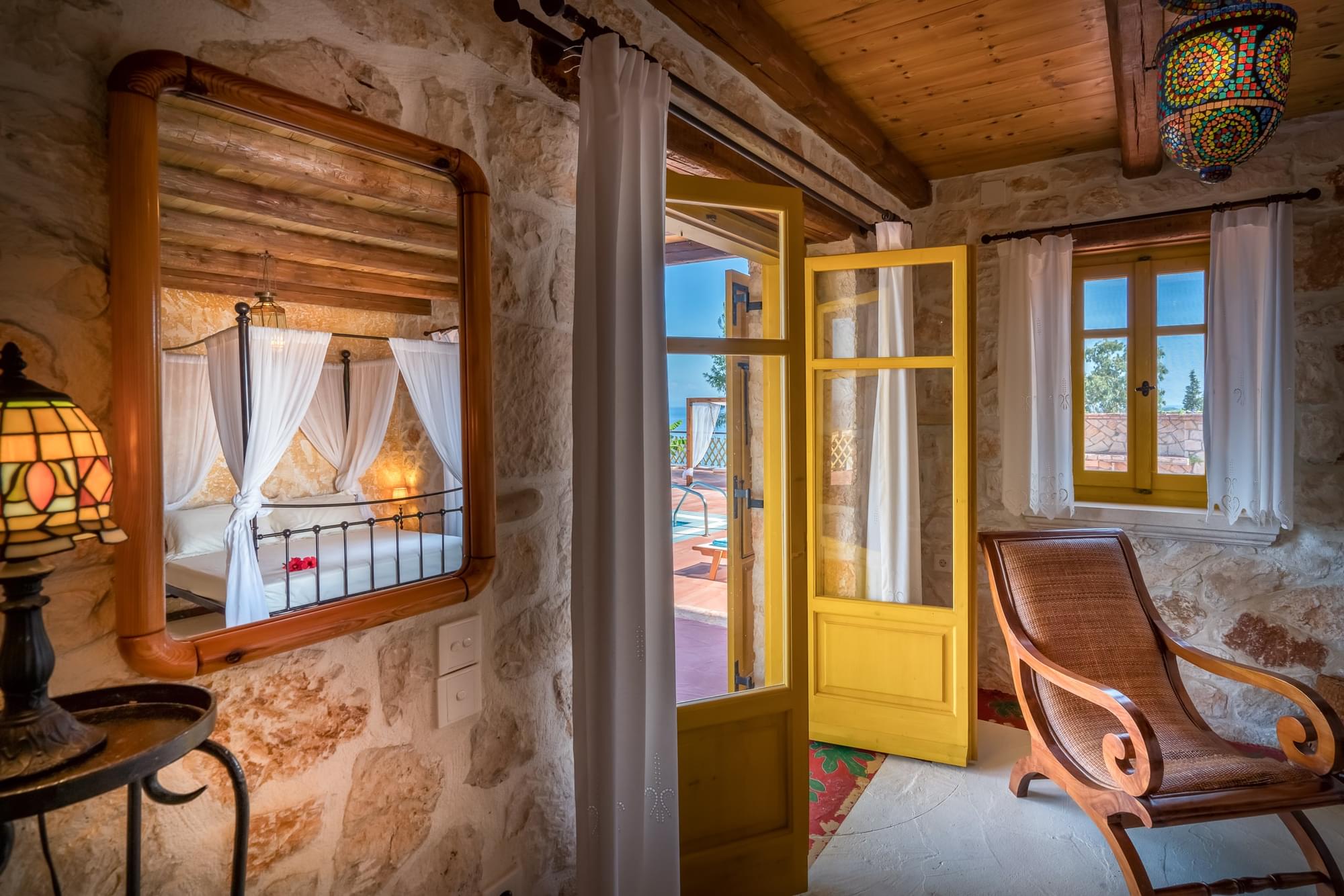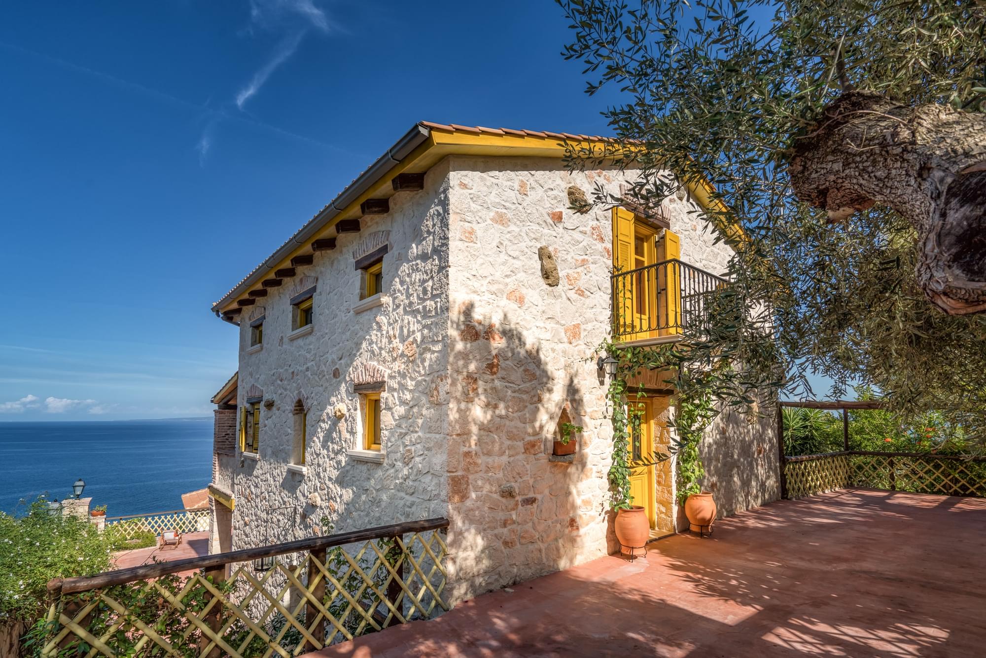 Villa Evi is a 3 floor house in Vassilikos. It is distinguished by its yellow shades and can accommodate up to 10 people. The house is spacious, with 2 big kitchens (one at ground floor and the other one on the 1st floor), 3 living rooms, 4 bedrooms and 3 bathrooms, one of each on every floor. It is fully equipped and furnished with exceptional and unique style. Enjoy your drinks and meals on its balconies, mesmerized by the Ionian Sea view. At the exterior grounds you will find a private swimming pool with a jet stream system, a shower, BBQ and parking space. Catch the sun rising from the sea and enjoy the early birds chirping!