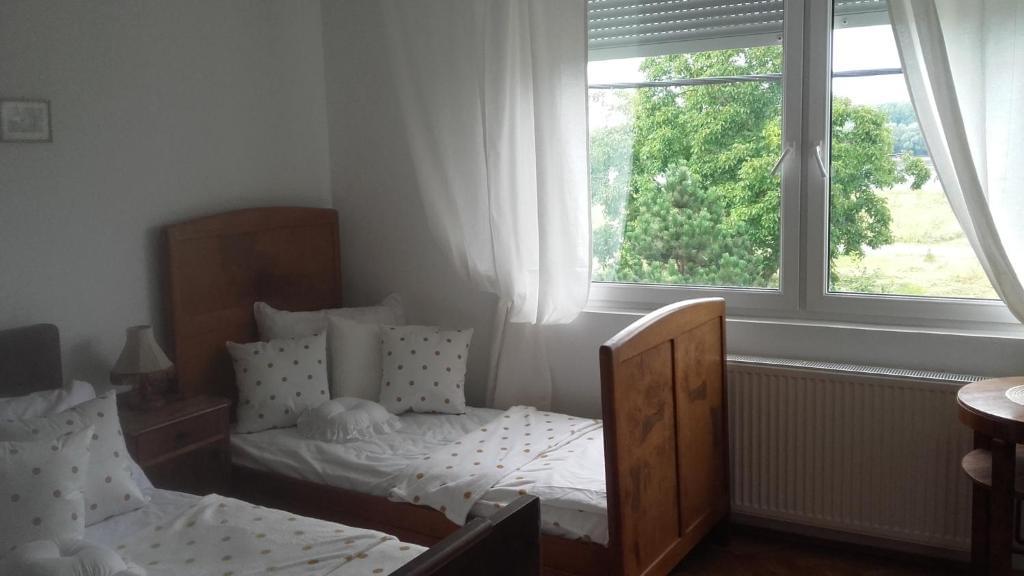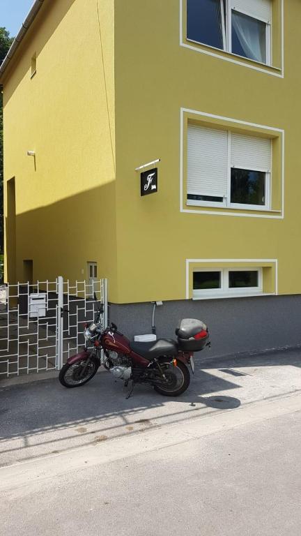Na prvom katu (visoko prizemlje) nalaze se dvije sobe, svaka ima bračni krevet, pogled na Dunav, frižider, kuhalo, satelitsku, wi fi i posebno kupaonicu. U jednu sobu mogu odsjesti tri osobe jer je u toj sobi još poseban krevet. Dvorište je prostrano s malim roštiljem i u podrumu se nalazi kuhinja sa svim uređajima i prostor za doručak i pušače jer je u objektu strogo zabranjeno pušenje i pokriveno je detektorima za dim. Na ulasku je mala recepcija za račune i primopredaju ključeva.