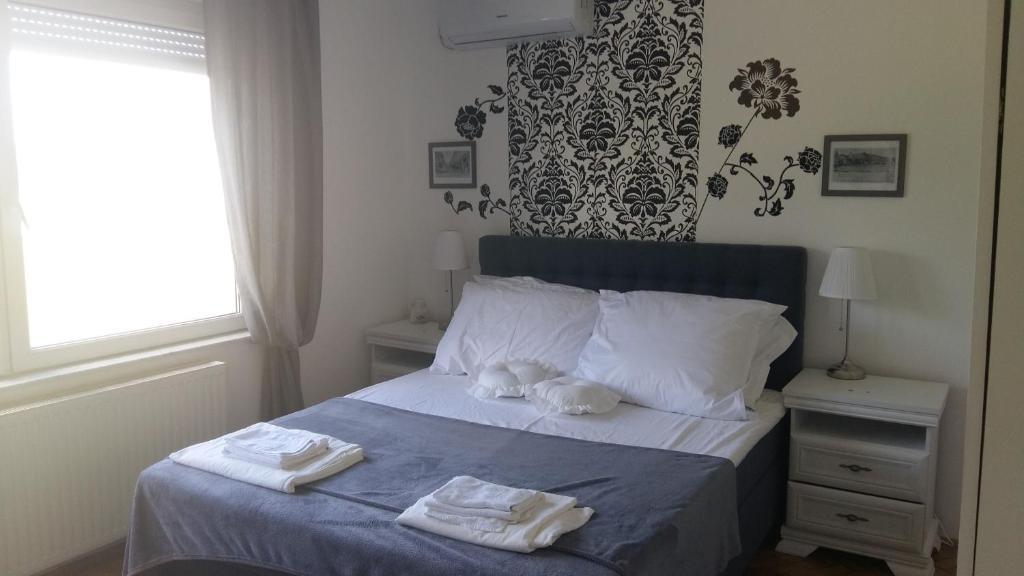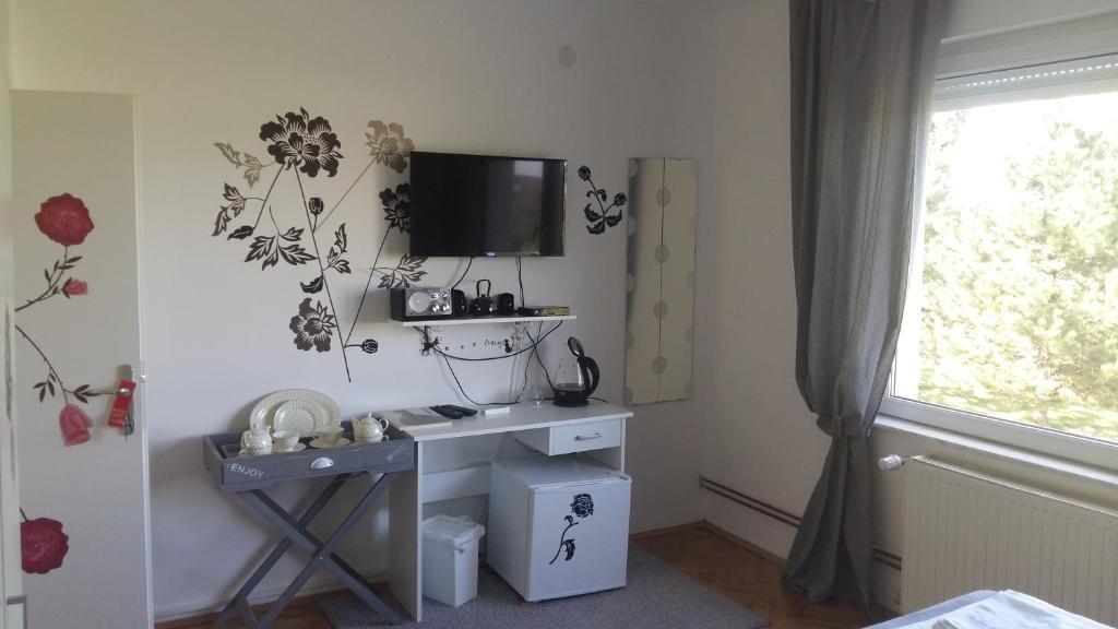 Na prvom katu (visoko prizemlje) nalaze se dvije sobe, svaka ima bračni krevet, pogled na Dunav, frižider, kuhalo, satelitsku, wi fi i posebno kupaonicu. U jednu sobu mogu odsjesti tri osobe jer je u toj sobi još poseban krevet. Dvorište je prostrano s malim roštiljem i u podrumu se nalazi kuhinja sa svim uređajima i prostor za doručak i pušače jer je u objektu strogo zabranjeno pušenje i pokriveno je detektorima za dim. Na ulasku je mala recepcija za račune i primopredaju ključeva.