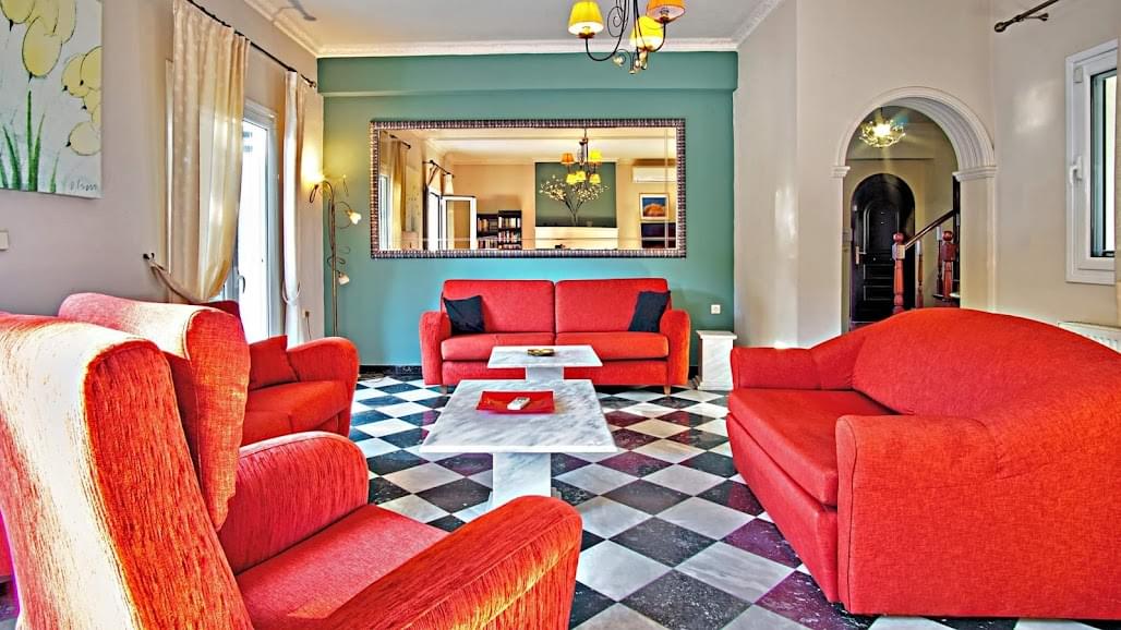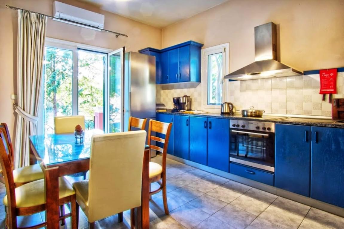 The 2 storey villa with private pool, 2 car garage and sea view is located in Temploni-Gouvia in the middle of the green emerald Corfu only 15 minutes from Corfu town and 5 minutes to the nearest beach and the marina of Gouvia. From here you can reach the famous spots like Paleokastritsa, Glyfada Beach, Ermones Golf Course in just a few minutes drive. It is just 15 minutes by car to the historical center of Corfu town, where you can not only admire the famous narrow alleys and Venetian architecture, but also enjoy a wide range of shops. The international airport at Corfu is only about 12 km away.