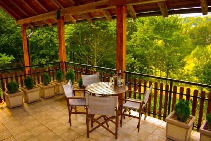 Na prvom spratu kuće nalazi se kompletno opremljena kuhinja sa trpezarijom i soba sa tri kreveta samca, i kupatilo sa veš-mašinom a ispred je velika terasa sa koje se pruža izvanredan pogled prema prirodi. Na spratu dnevni boravak sa TV-om, sobom sa francuskim ležajem, kupatilom i manjom kuhinjom. Na terasi se nalazi baštenski nameštaj, zvučni sistem, kao i roštilj.