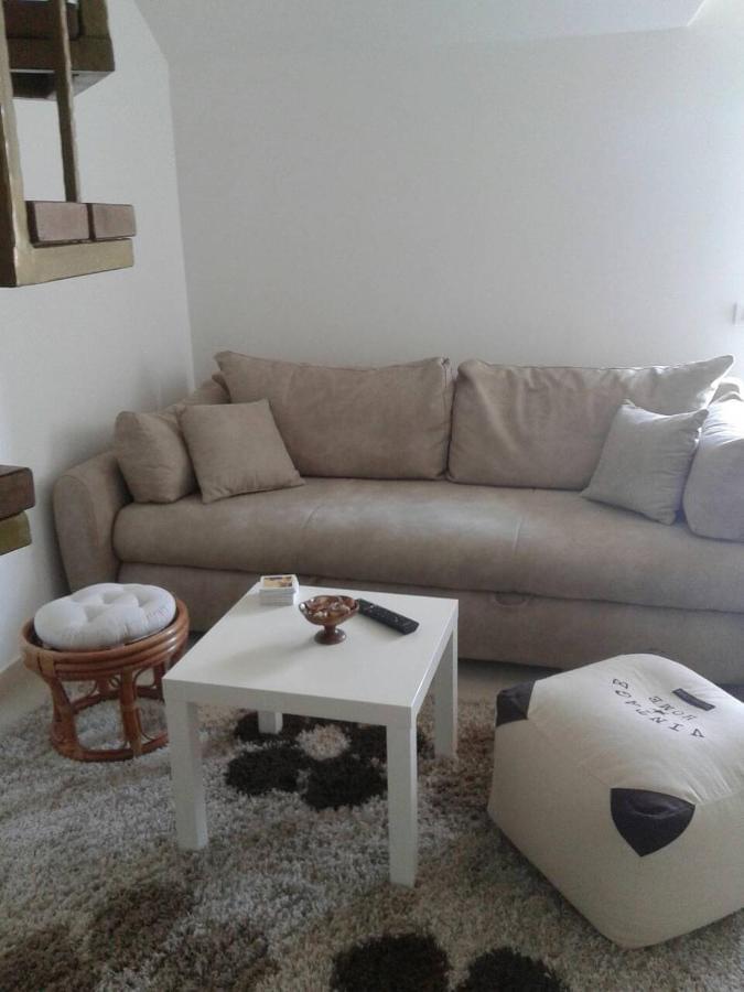 U dnevnoj sobi je sofa koja kada se razvuče ima veličinu veću od francuskog ležaja. Iz dnevne sobe i trpezarije je takodje izlazak na drugu terasu. Kuhinja je kompletno opremljena, obezbeđen besplatan parking, peškiri i posteljine.